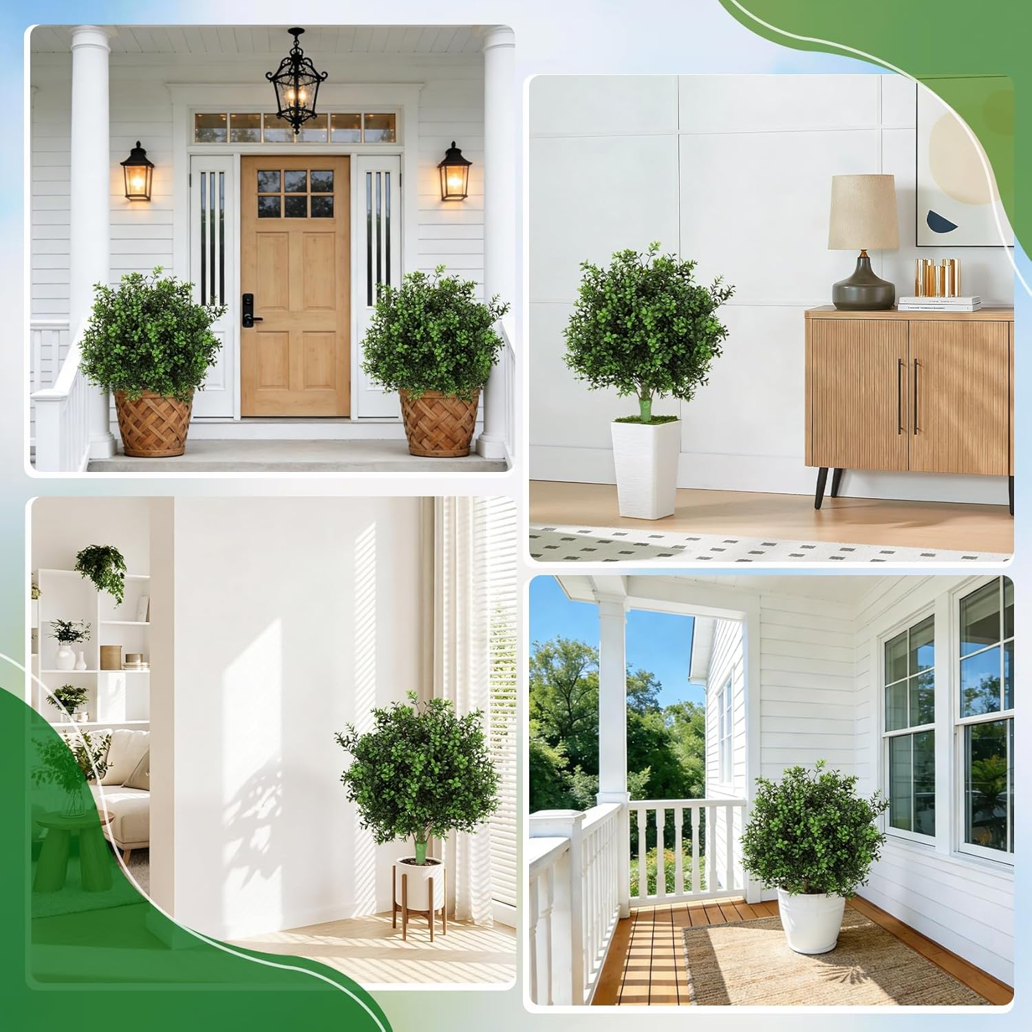 Elevate Your Space with Effortless, Evergreen EleganceTired of high-maintenance plants that wilt and die? Transform your home or garden with our 2-Pack Artificial Boxwood Topiary Ball Trees. Designed for those who love the look of lush greenery but not the ongoing chores, these faux shrubs deliver year-round perfection without the hassle.Why Our Artificial Boxwood Balls Are Your Best Choice:Unmatched Realism & CraftsmanshipWe donβt just make artificial plants; we craft botanical replicas. Each tree is meticulously designed with high-density polyethylene (PE) leaves that capture the subtle veins, color variations, and natural growth patterns of real boxwood. The full, rounded shape is hand-finished to ensure a luxuriously lifelike appearance that stands out in any setting.