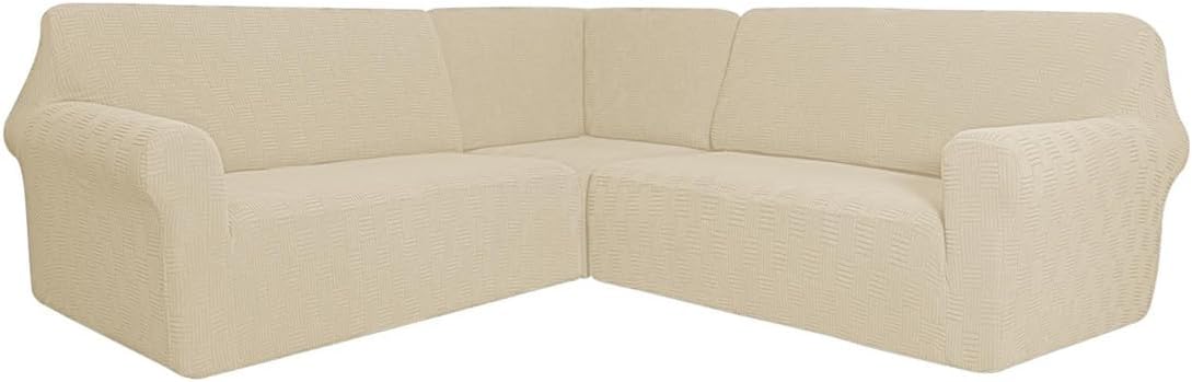 3 Pcs Stretch Soft Polyester Blend L Shaped Couch Covers for Sectional Corner Sofa Slipcover 5 Seat Couch Cover Furniture Protector Covers for Living Room