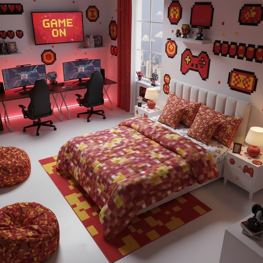 Welcome to our store. Size information: Twin size: 1 Comforter 68"W x 90"L and 1 Fitted Sheet 39"W x 75"L x 16"H and 1 Flat Sheet 67"W x 96"L and 2 Pillowcases 20" x 30" and 2 Throw Pillow Covers 18" x 18" . Full size: 1 Comforter 79"W x 90"L and 1 Fitted Sheet 55"W x 75"L x 16"H and 1 Flat Sheet 81"W x 96"L and 2 Pillowcases 20" x 30" and 2 Throw Pillow Covers 18" x 18" . Queen size: 1 Comforter 90"W x 90"L and 1 Fitted Sheet 60"W x 80"L x 16"H and 1 Flat Sheet 90"W x 102"L and 2 Pillowcases 20" x 30" and 2 Throw Pillow Covers 18" x 18" . King size: 1 Comforter 104"W x 90"L and 1 Fitted Sheet 78"W x 80"L x 16"H and 1 Flat Sheet 90"W x 106"L and 2 Pillowcases 20" x 36" and 2 Throw Pillow Covers 18" x 18" . Useful and practical: A luxurious product for homes,dorm rooms,hotels,guest rooms.Practical to use for being polyester, feels like cotton which is super soft and breathable.No chemicals used, no dye substance harming the health of you or your family. Unique design: Vivid Colors won't fade thanks to new 3d digital printing methods. These unique designs match well with various color palettes of your rugs, curtains, headboard, furniture, and all other decor accessories. Washing instructions: Machine wash it in cold water without bleach,and tumble dry on low heat to restore its freshness and appearance.