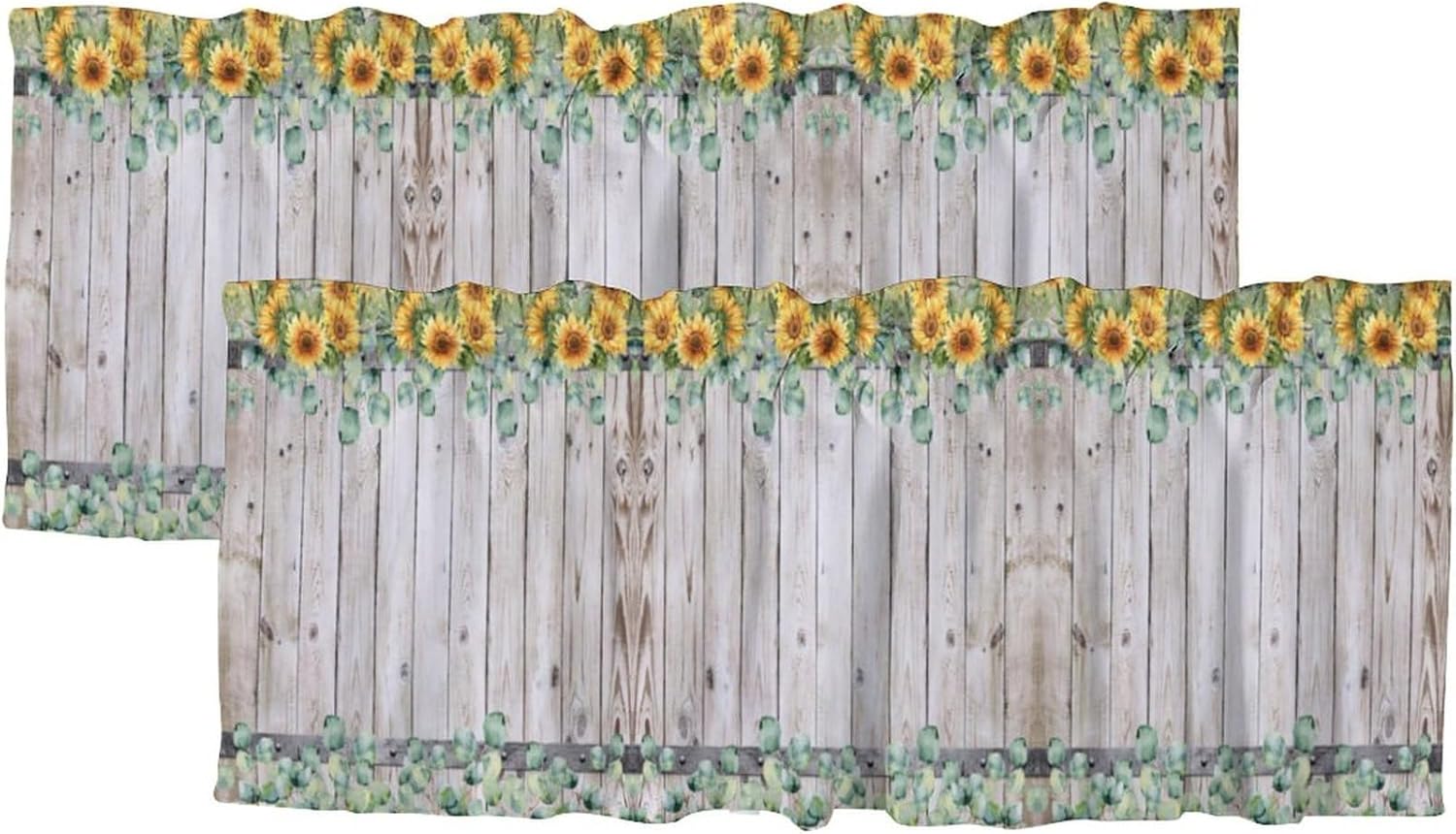 Brebasf Rustic Highland Cow Valance for Window Curtains,Vintage Farmhouse Misty Forest Sunflower Eucalyptus Rod Pocket Curtains Valance Window Treatment 54x18inch,2Pcs