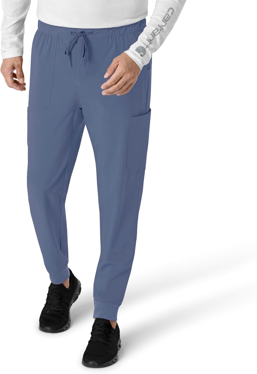 Experience the perfect blend of comfort and functionality with Carhartt Force Cross-Flex Men's Jogger Scrub Pant. These jogger-style scrub pants are designed to provide the utmost comfort during your shifts, ensuring you can perform at your best. Crafted with a sport-inspired silhouette, these pants feature a full elastic waistband with a drawstring, allowing you to adjust for a personalized fit. The rib knit cuffs taper the profile, ensuring your feet can move freely without any hindrance. Stay organized and prepared with multiple pockets. The two deep front slash pockets offer convenient storage on the go, while the two back pockets zip shut to keep smaller items secure. The right side cargo pocket is equipped with utility loops to secure items like your glasses or badge, while the left side cargo pocket features an internal mesh cellphone pocket, keeping your phone handy but out of sight. Designed for durability and comfort, these scrub pants are made from stretchy micro ripstop fabric. Whether you're on the move or at rest, these pants will keep up with your demands. Upgrade your workwear with Carhartt Force Cross-Flex Men's Jogger Scrub Pant and experience comfort like never before.
