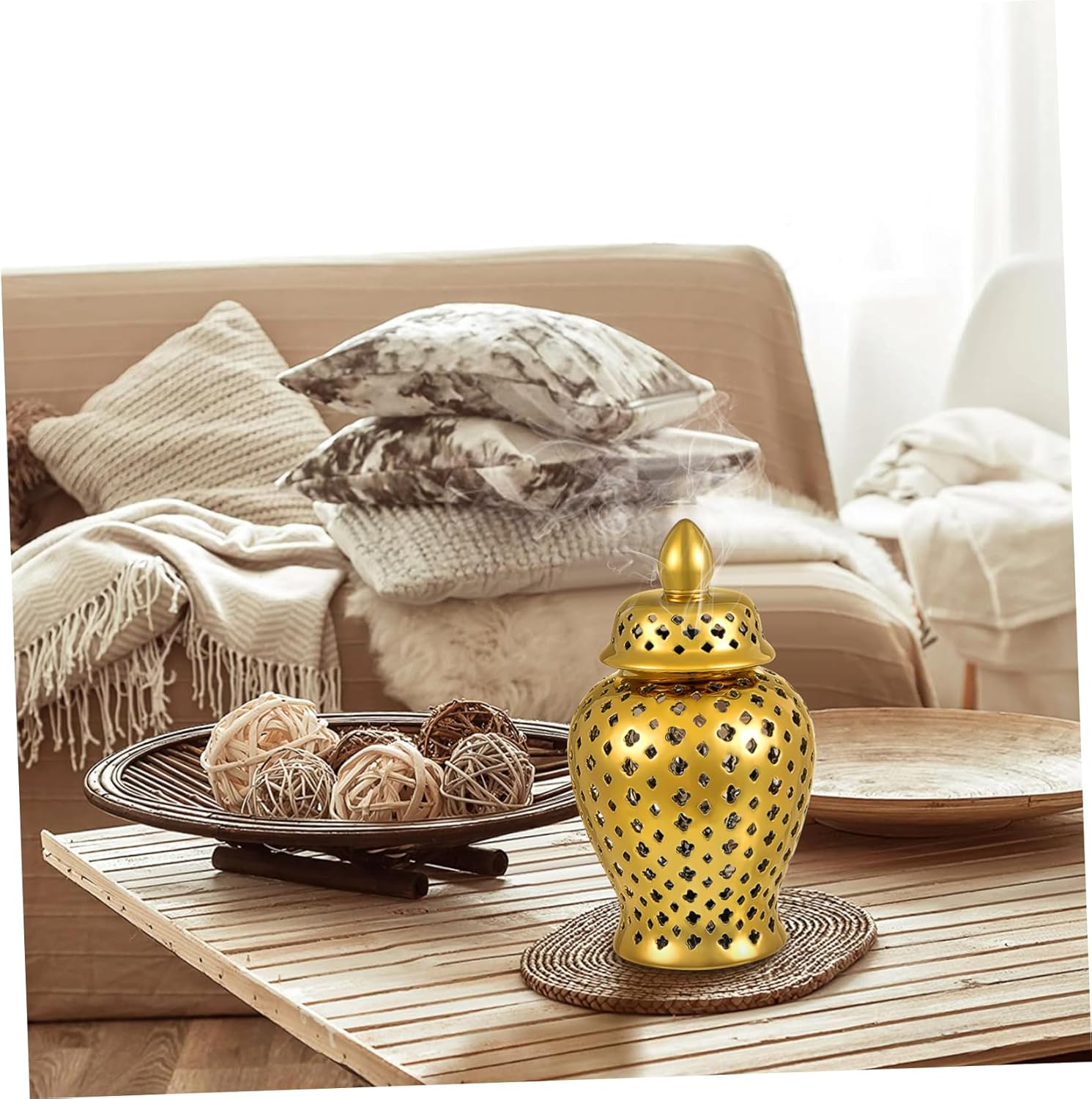 Package List 1 x Hollow Out Jar Characteristics - Size: 28.00X15.00X15.00cm/11.00X5.89X5.89in decorative ginger jar - Color: Golden unique kitchen decor -Material:Ceramic shelf decorations living room - The hollow vase can be decorated with flowers and placed on the wedding party as wedding flower vase. - This unique design hollow vase, made of reliable ceramic material, which is for long time use decorative jar. - Ceramic jar is perfect for various occasions, such as balcony, patio, garden, wedding decoration, etc ginger vase. - The product's fine workmanship and creative retro design make it a wonderful decoration for you decorative jars for living room. - It can be a wonderful for your friends or family members who love planting flowers vase home decor.Goods Informationginger vase Your home will be an attractive focal point, especially if you add flowers to them.flower vase This hollow flower arrangement is made of ceramic material.ginger jar decorative The special flower Vase is the suitable shape and size to create an eye-catching vibrant display of color and also look good to place them in house or garden, balcony
