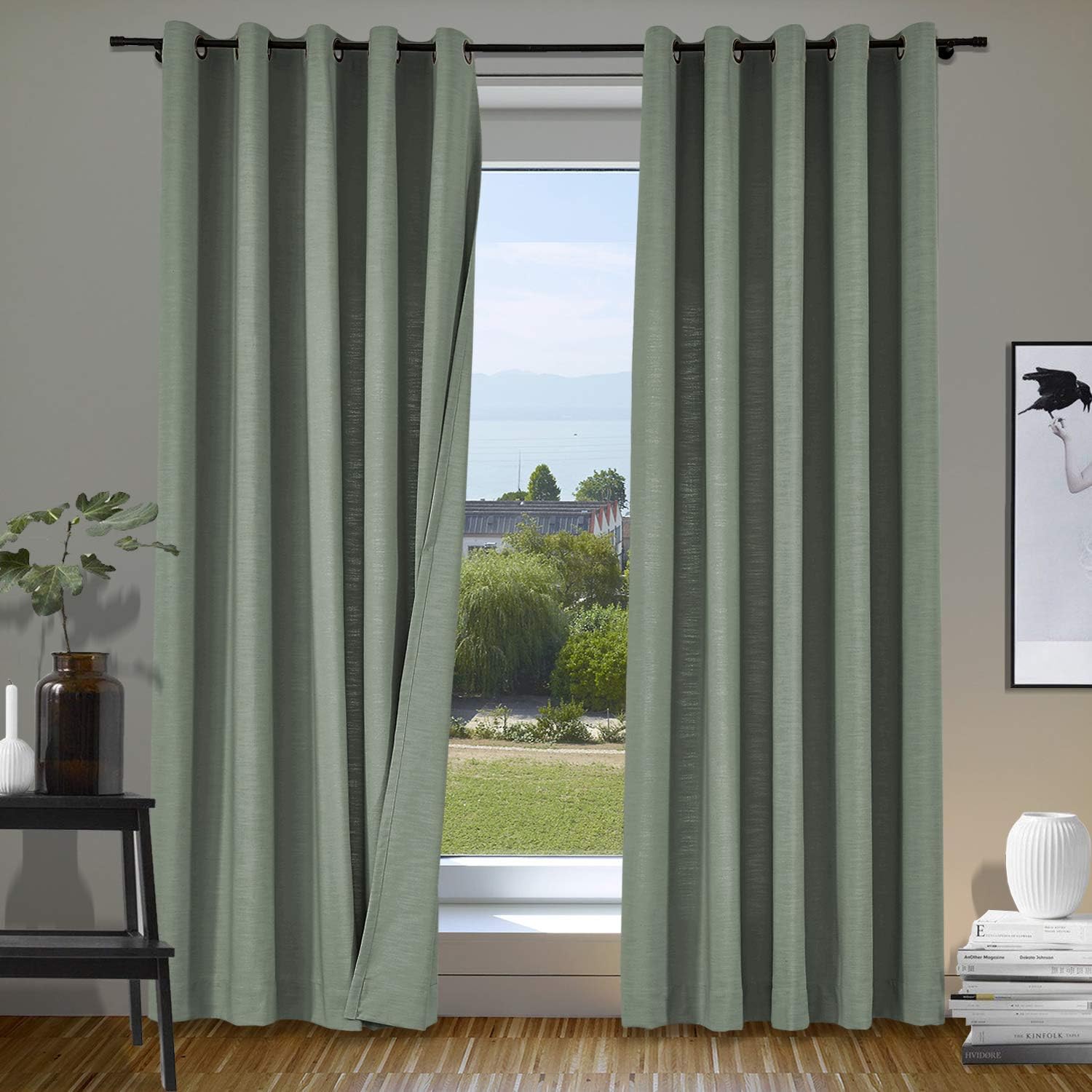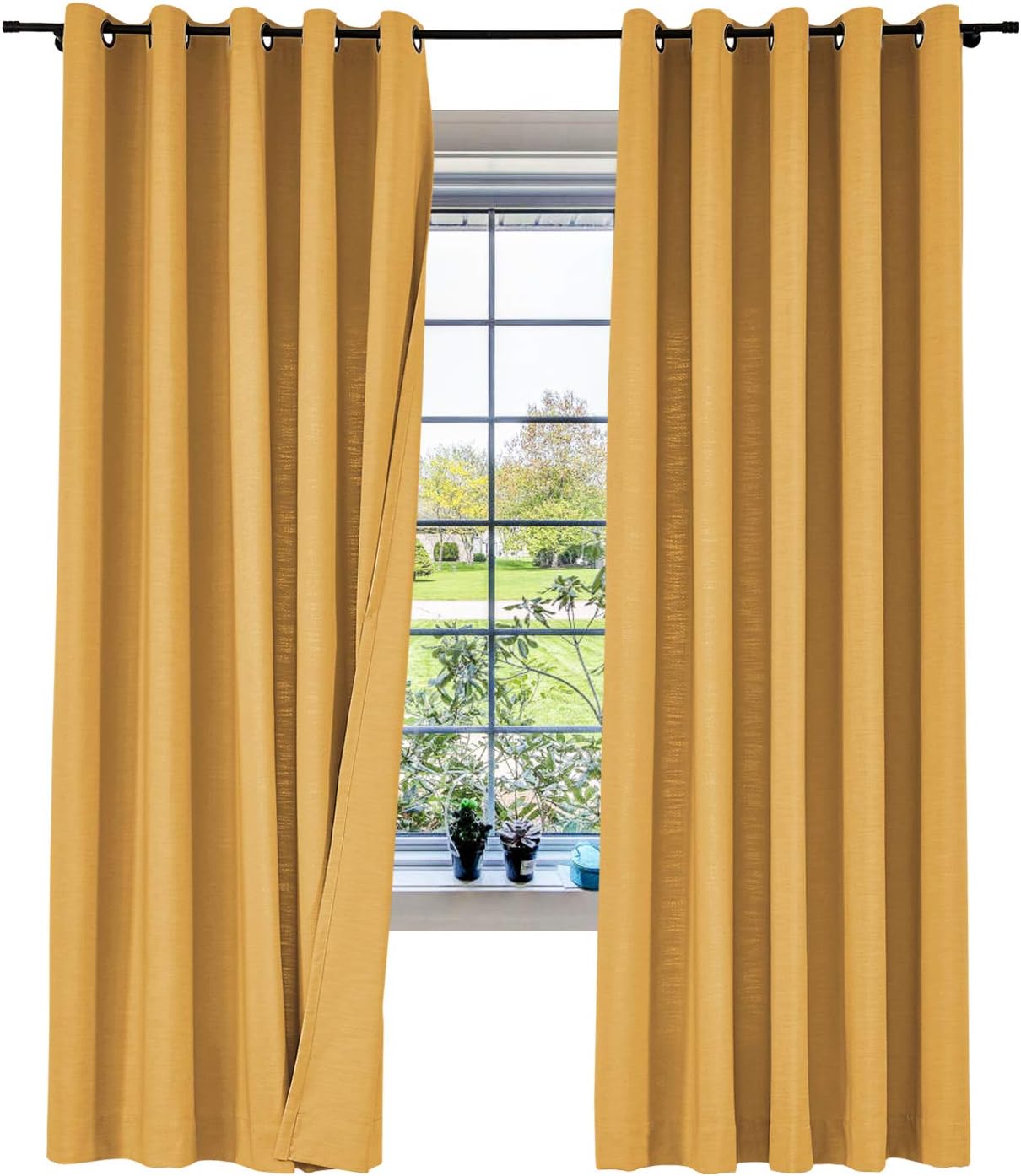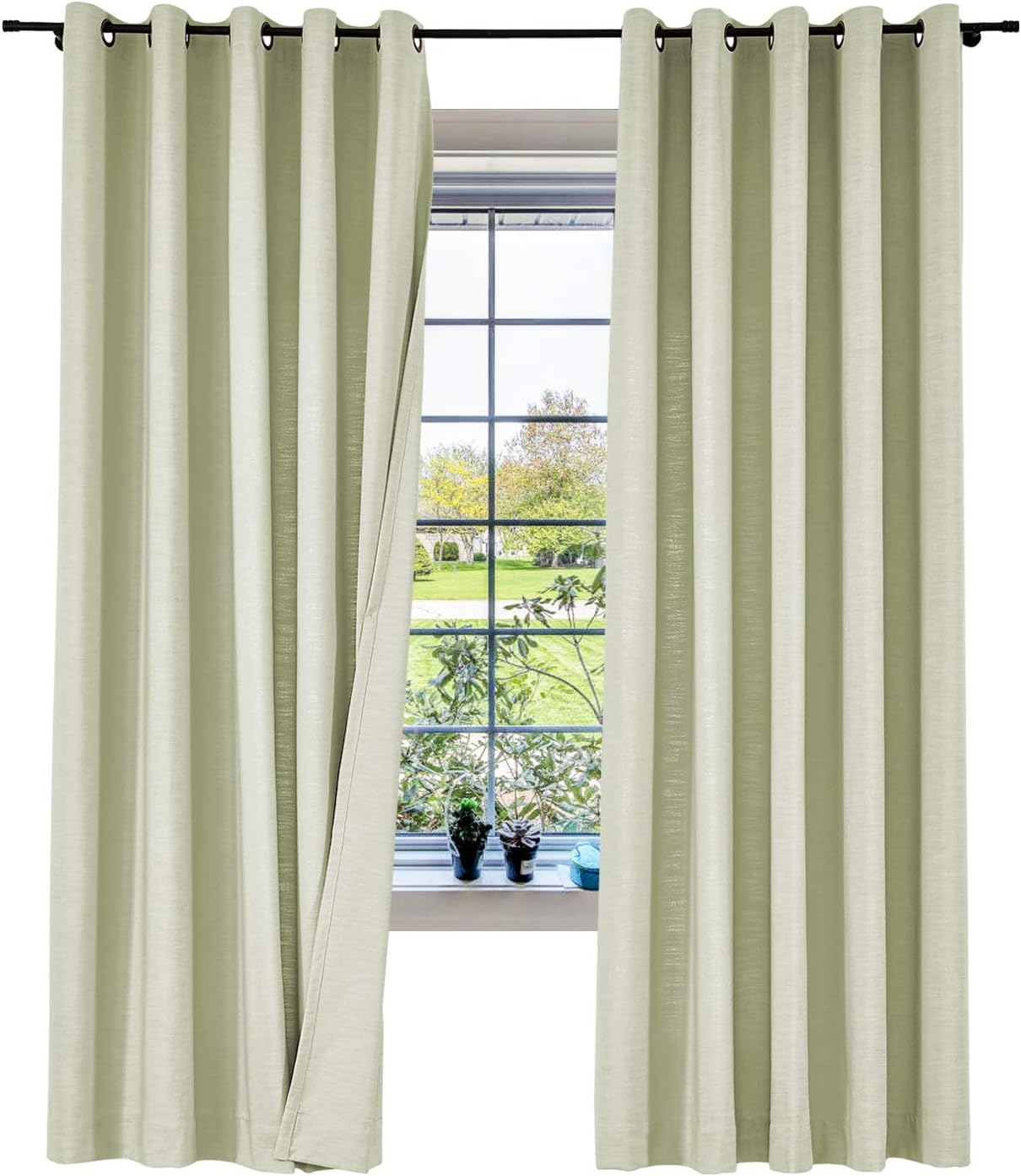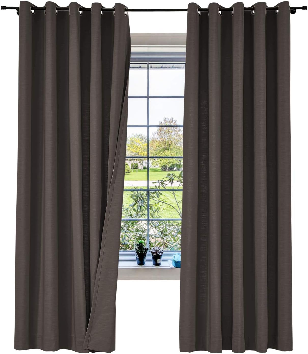ISABELLA COLLECTION - Linen Blend Curtains★Fabric FeaturesMaterial: linen and cotton blend textured fabric, linen appearance and good hand feel, while more durable than linen.Heavyweight 500gsm one layer without liner, 75%-85% Blackout effect( dark color works better).★Multi FunctionsHigh QualityNice StylePrivacy Protection Noise ReducingEnergy SavingLight Blocking★Perfect forLate sleepers, Shift workers, Children, Seniors, Infants, Parents, Students, Computer operators.Best to hang in Living Room, Nursery Room, Bedrooms, Guest Room, Kitchen, Hall, Patio Door, Sliding Door, Gallery, office etc. Curtain Header GuidanceRod or pole: works for header Grommet, Tab Top, Back Tab & Rod Pocket.Track or rod with rings: work for Flat Hooks, Pinch Pleated.Curtain WidthRemember: Always measure the curtain pole or track length, not the window. Always allow for overlap of 1” to 3” allowing the curtains to close together helping prevent light leaks when closed.Tab Top / Pinch Pleated: suggest 1.1-1.3x times of pole or track length.Back Tab & Rod Pocket: suggest 1.1-1.5x times of pole or track length.Grommet / Flat Hooks : suggest 1.5-2x times of pole or track length.Curtain LengthTab Top / Grommet / Back Tab & Rod Pocket: measure from top of the pole to where curtain finish.Flat Hooks / Pinch Pleated: measure from bottom of the rings to where curtain finish.Tips1.All of our curtains are hand-made, will have 1% measurement discrepancy.2.The digital images we display have the most accurate color possible . However ,due to difference in computer monitors , variations in color between the actual product and your screen may occur .