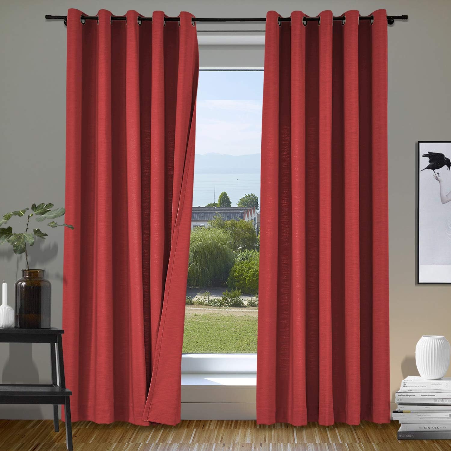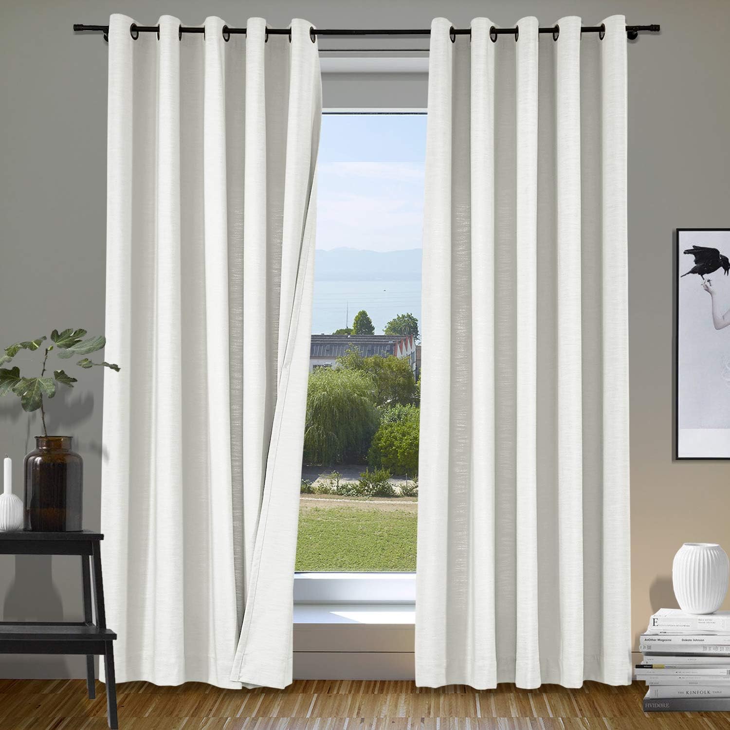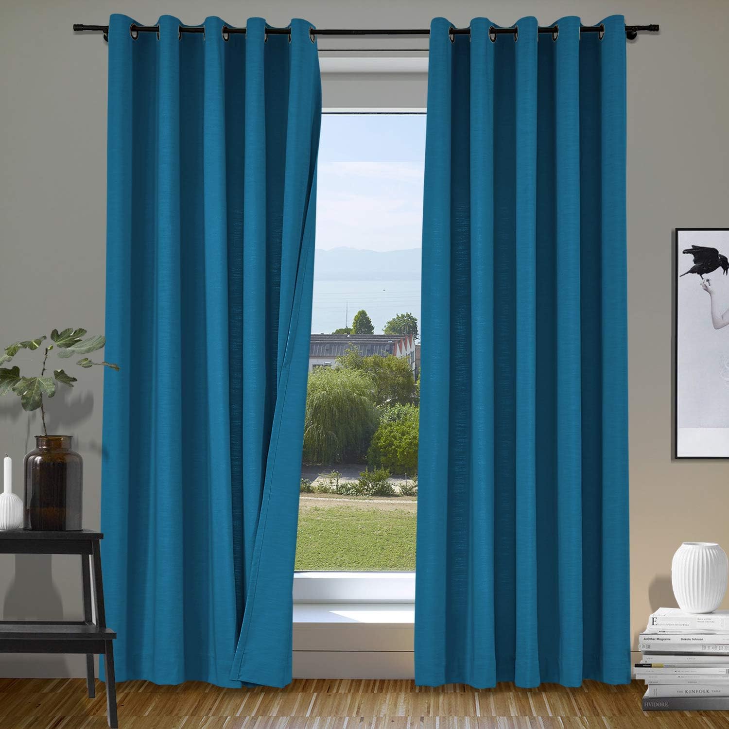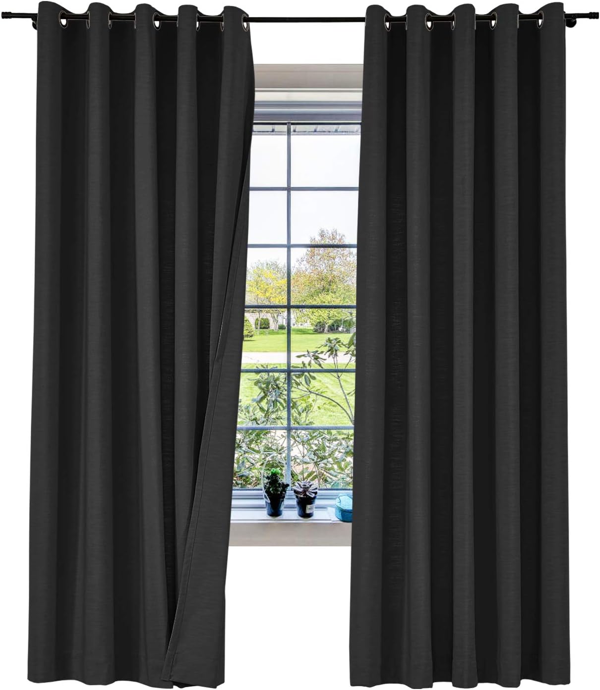 ISABELLA COLLECTION - Linen Blend Curtains★Fabric FeaturesMaterial: linen and cotton blend textured fabric, linen appearance and good hand feel, while more durable than linen.Heavyweight 500gsm one layer without liner, 75%-85% Blackout effect( dark color works better).★Multi FunctionsHigh QualityNice StylePrivacy Protection Noise ReducingEnergy SavingLight Blocking★Perfect forLate sleepers, Shift workers, Children, Seniors, Infants, Parents, Students, Computer operators.Best to hang in Living Room, Nursery Room, Bedrooms, Guest Room, Kitchen, Hall, Patio Door, Sliding Door, Gallery, office etc. Curtain Header GuidanceRod or pole: works for header Grommet, Tab Top, Back Tab & Rod Pocket.Track or rod with rings: work for Flat Hooks, Pinch Pleated.Curtain WidthRemember: Always measure the curtain pole or track length, not the window. Always allow for overlap of 1” to 3” allowing the curtains to close together helping prevent light leaks when closed.Tab Top / Pinch Pleated: suggest 1.1-1.3x times of pole or track length.Back Tab & Rod Pocket: suggest 1.1-1.5x times of pole or track length.Grommet / Flat Hooks : suggest 1.5-2x times of pole or track length.Curtain LengthTab Top / Grommet / Back Tab & Rod Pocket: measure from top of the pole to where curtain finish.Flat Hooks / Pinch Pleated: measure from bottom of the rings to where curtain finish.Tips1.All of our curtains are hand-made, will have 1% measurement discrepancy.2.The digital images we display have the most accurate color possible . However ,due to difference in computer monitors , variations in color between the actual product and your screen may occur .