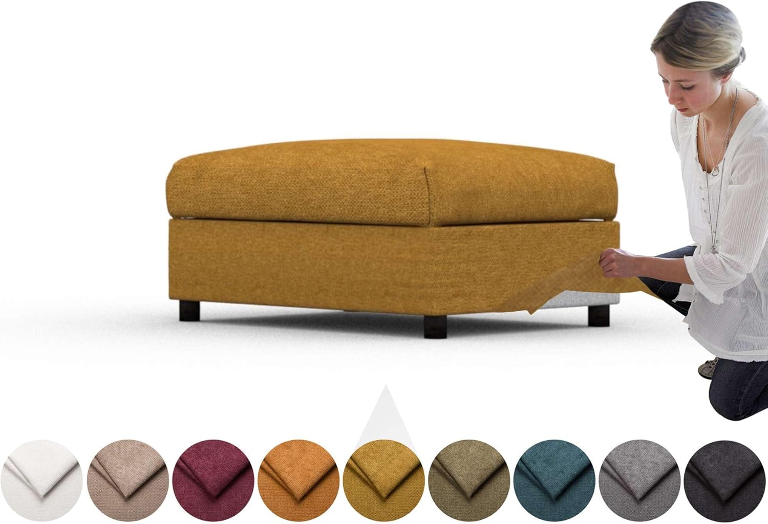 | Product Care Instructions | 1. Remove the existing Vimle Footstool slipcovers. 2. The Comfortly high-quality covers come in 2 separate pieces. Measure your footstool and compare the dimensions to the ones listed on the website before placing your order. 3. Once you have placed all of the covers in position, zip them up securely and enjoy your new furniture! We believe that comfort comes with INDIVIDUALITY, DETAILS and exceptional QUALITY., Machine wash at 40°C. Iron at a lower temperature. Tumble dry at low heat. |