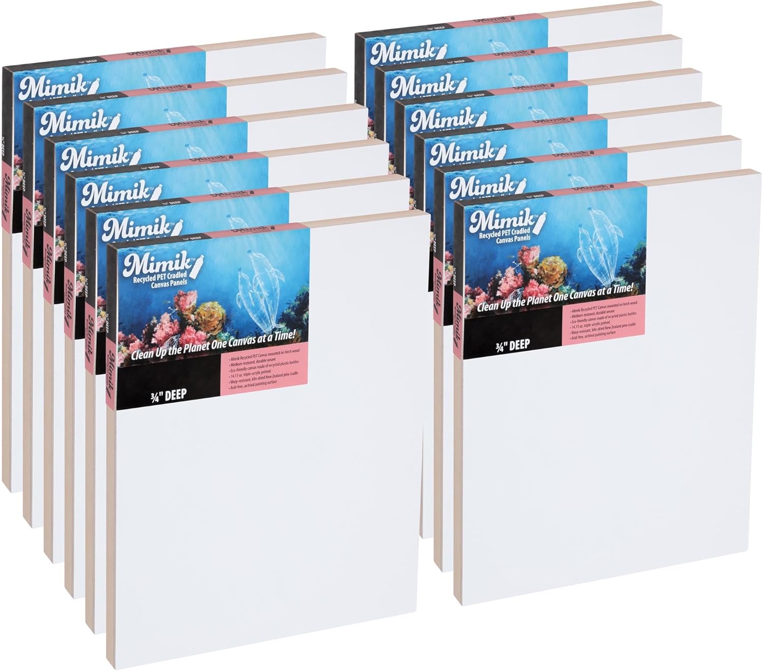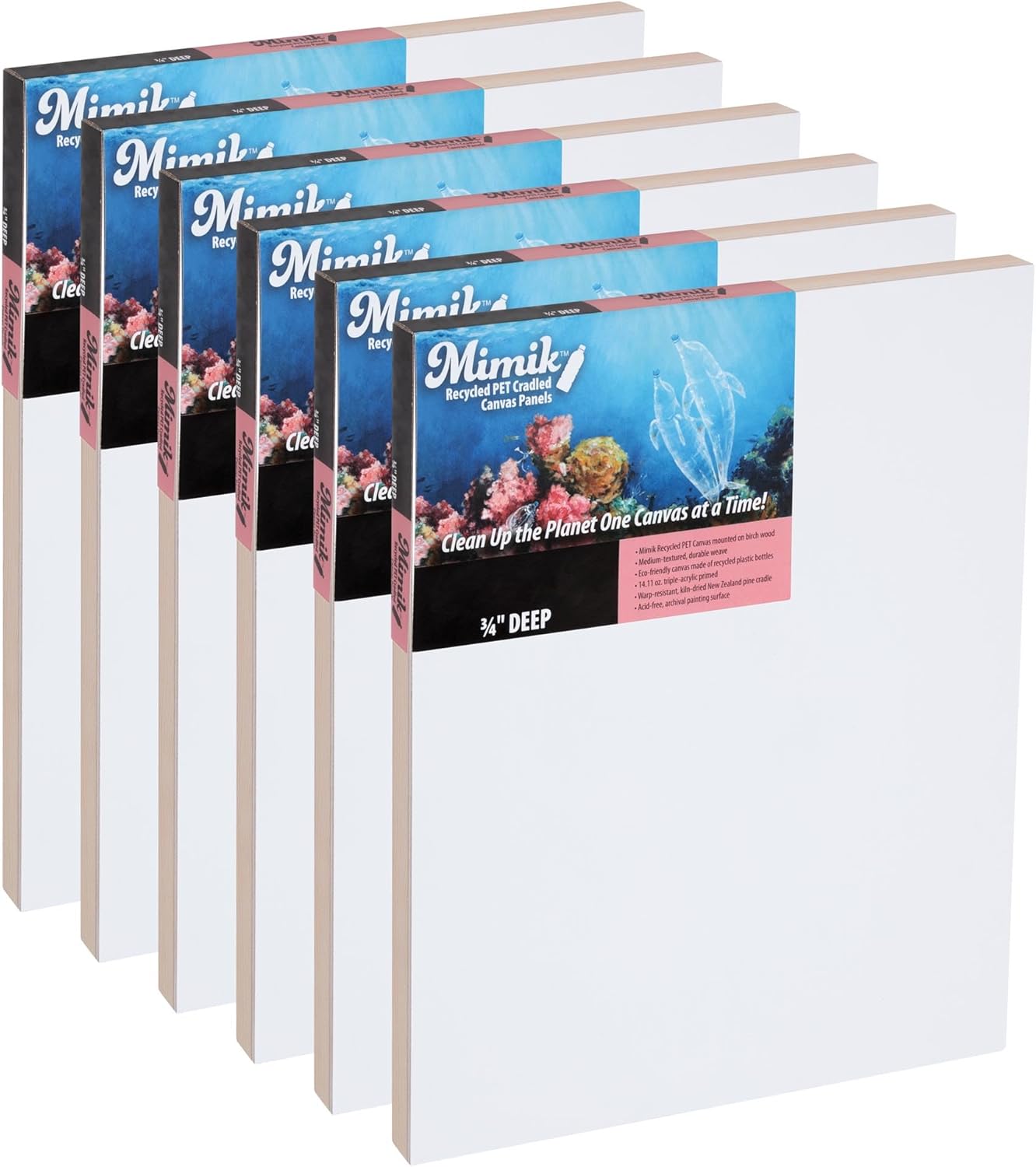 Introducing the Creative Mark Mimik Recycled PET Cradled Canvas Panel available in 3/4" and 1-1/2" depth, a perfect choice for artists who prioritize both performance and sustainability. These wood art panels are meticulously crafted to suit a variety of painting techniques, including watercolor, oil, acrylic, gouache, and casein. With a focus on eco-conscious manufacturing, the canvas is woven from PET thread, produced by spinning recycled plastic pellets at high speed, which mirrors the texture and responsiveness of traditional cotton canvas. This innovative approach not only delivers an archival painting surface but also contributes to reducing the amount of discarded plastic. The Mimik Recycled PET Cradled Canvas Panel features a medium-textured, durable weave, mounted with a warp-resistant, kiln-dried New Zealand pine cradle, accompanied by a birch panel. This combination ensures a rigid support system, making it ideal for brittle paints such as egg tempera. The 14.11 oz canvas is triple-acrylic-primed, providing a robust foundation for your artistic endeavors. Designed with the modern artist in mind, these panels for painting offer versatility and reliability. The 3/4" depth adds dimension to your artwork, while the non-toxic materials align with environmentally friendly practices. Whether you're utilizing them as art boards for watercolor painting or as a gesso board large for acrylics, the Creative Mark Mimik panels ensure an exceptional experience for artists across all mediums. The sturdy construction of these Earth friendly canvas panels ensures they remain flat, offering a smooth canvas board that is warp-resistant and kiln-dried. Suitable for both novice and experienced artists, these painting boards for artists are a reliable addition to any studio. Embrace the future of art with Creative Mark's Mimik Recycled PET Cradled Canvas Panels, where artistry meets sustainability.