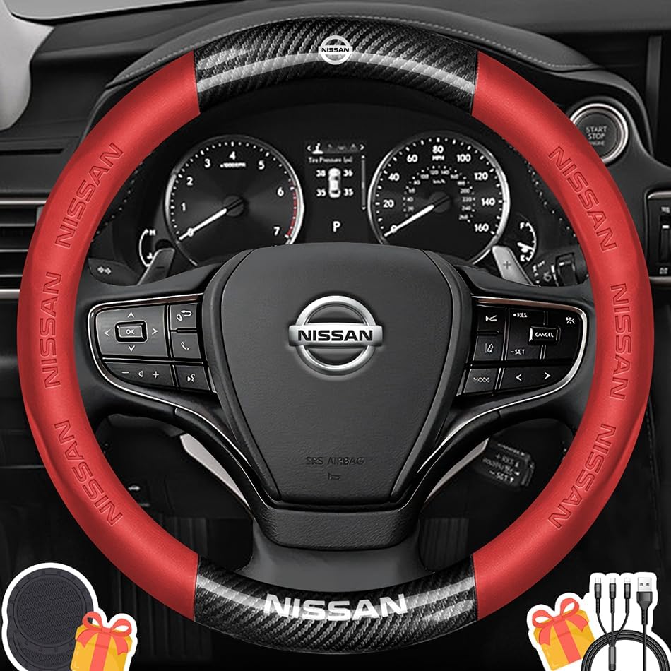 Customized Steering Wheel Cover for NissanPackage include :1*steering wheel cover for Nissan,2*coasters for Universal,1* 3-in-1 USB fast charging cable