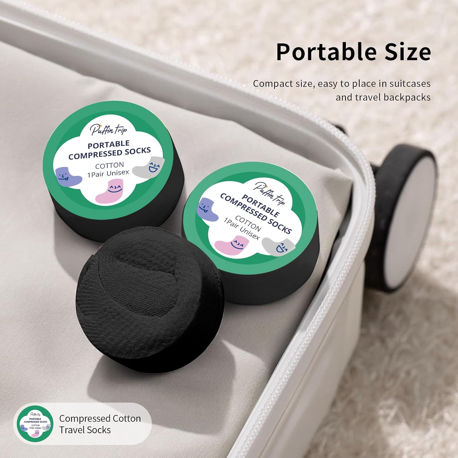 PUFFIN TRIP Disposable Bath Towels & Cotton Compressed Socks Black