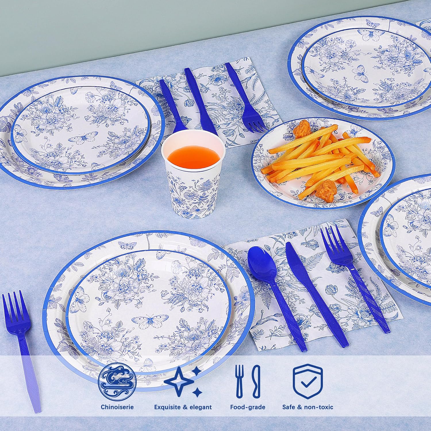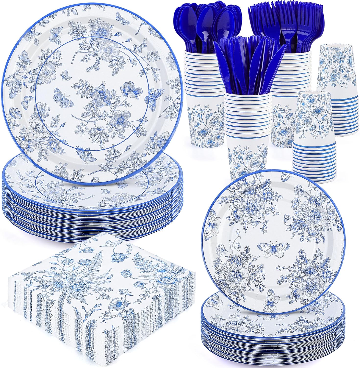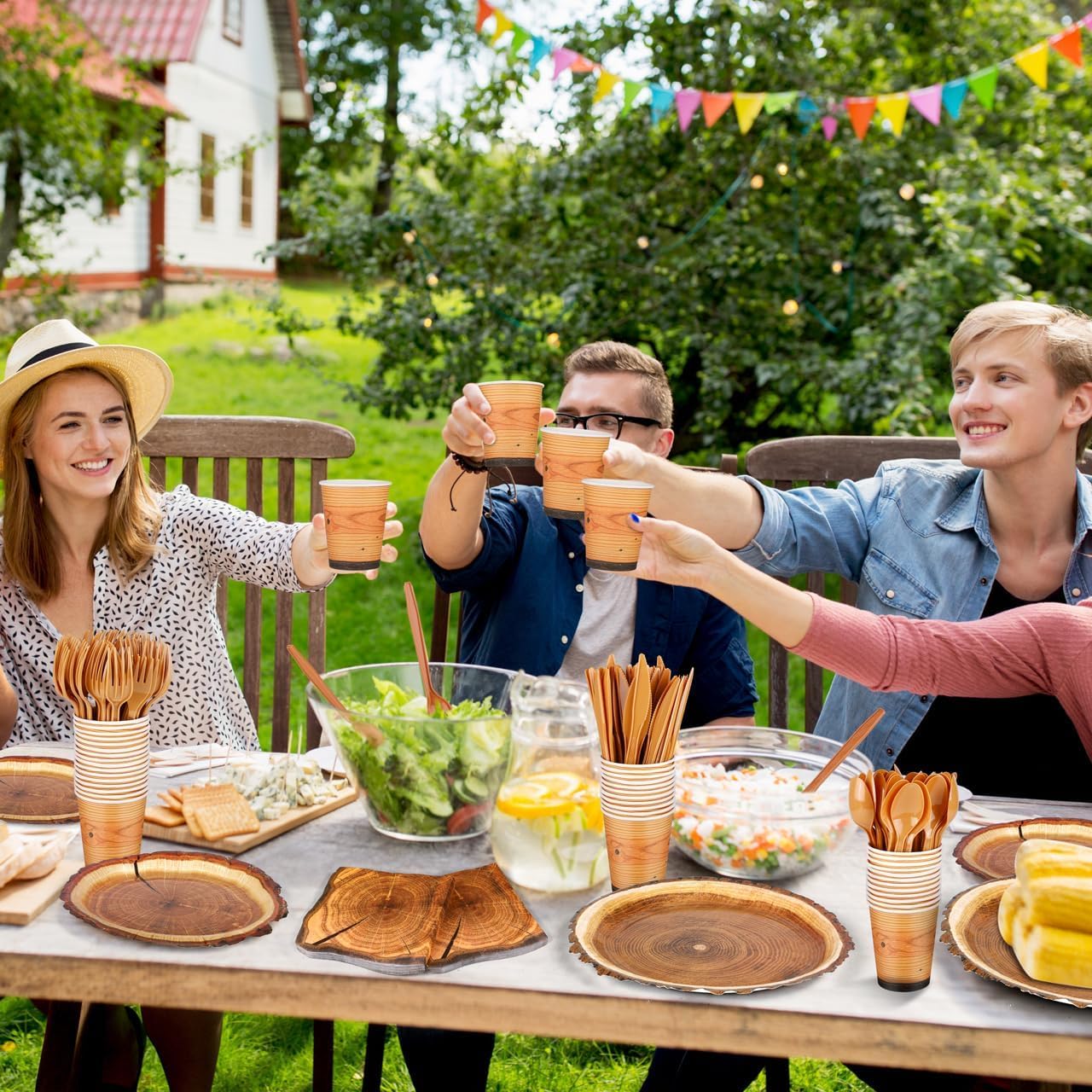 • Reasonable size: we provide you with paper plates in 7 inches/17 cm and 9 inches/22 cm, the capacity of paper cup is 9 ounces, and the diameter of folded napkin is 6.5 inches/16 cm