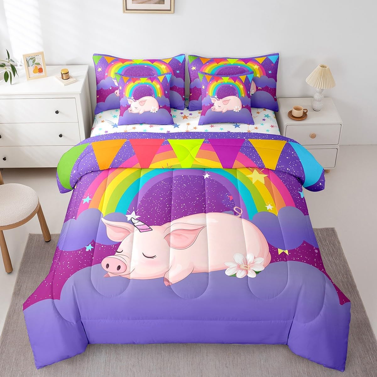 | Included Components | 1 Comforter, 1 Fitted Sheet, 1 Flat Sheet, 2 Pillow Cases, 2 Throw Pillow Covers |