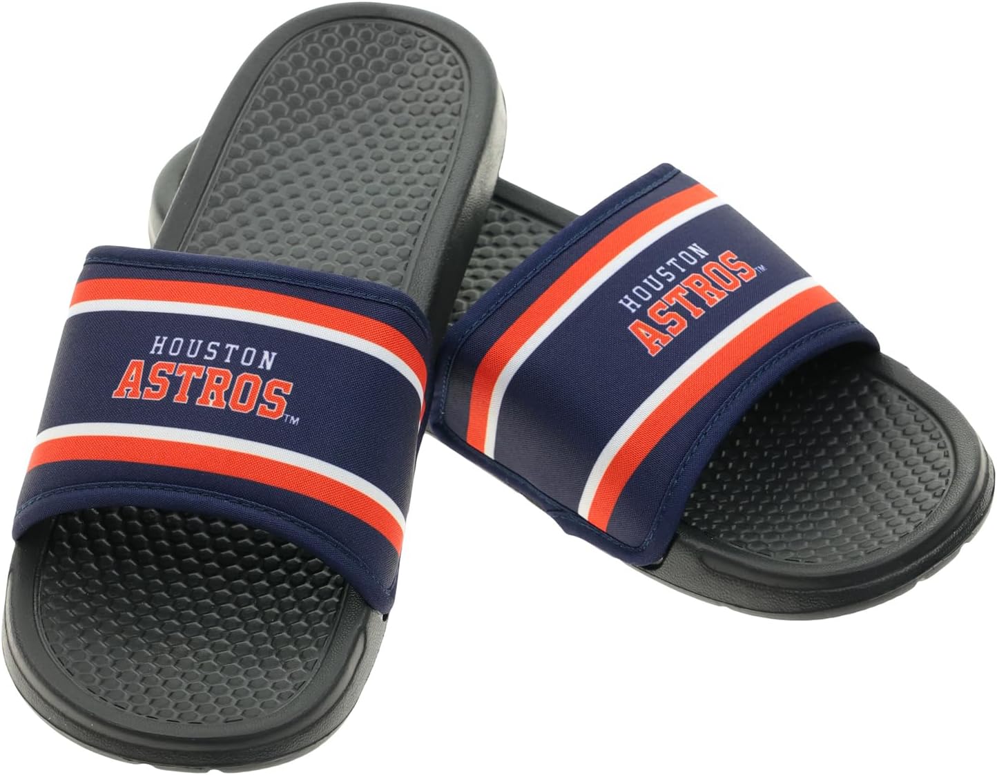 Step up your game-day look with the FOCO MLB Printed Slide Sandals. Designed for ultimate comfort and style, these officially licensed slides let you showcase your team pride effortlessly. Crafted with a cushioned footbed and durable outsole, these sandals provide all-day support whether you're at the ballpark, tailgating, or lounging at home. The bold, team-inspired printed design ensures that your fandom stands out with every step. Perfect for casual wear or post-game relaxation, these slides are a must-have for any baseball fan. Show off your team spirit while enjoying comfort and quality from FOCO.