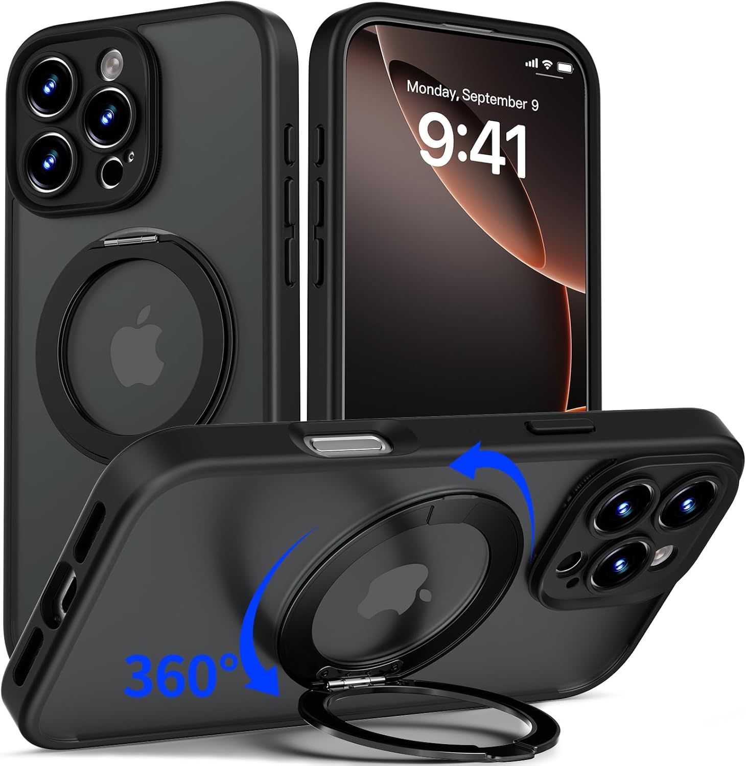 DecaStars for iPhone 16 Case Upgraded 360° Spin Magnetic Stand, Compatible with Magsafe, Military Protection, Full Camera Protection, Translucent Matte Phone Case for iPhone 16, Blue