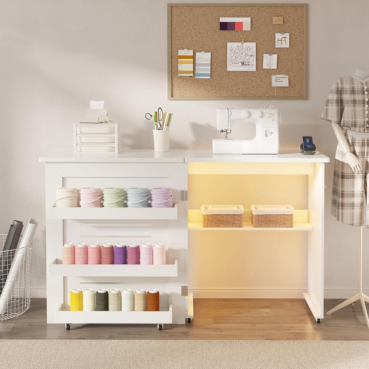 • 【Space-Saving Foldable Design】When not using your table, 6 wheels make it easy to move your station to a convenient spot to be used as a side table,providing ample storage space, easily organizing sewing tools and materials