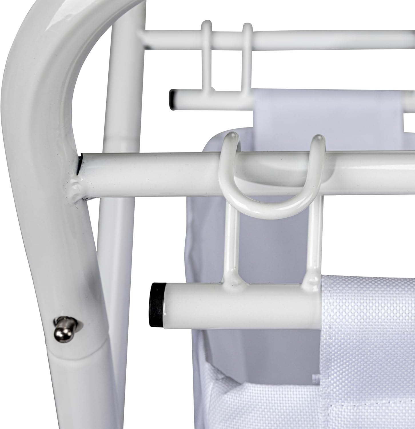 This rolling laundry hamper will make your laundry routine fast and hassle-free with its functionality and convenient features. Keep your socks together and clothing off the floor with the help of this classically styled hamper. This laundry hamper is made of a metal frame with an white finish. This frame is not only pleasant to the eyes but can also fold for compact storage when the hamper is not in use. While folded, it can easily fit in between the washing machine and dryer, behind a door or in a closet. The heavy-duty canvas bag can hold up to 2 loads of laundry and can be washed along with your clothes. This white bag attaches to the frame via velcro hook and loop fasteners--saving you from complicated metal closures. The smooth rolling casters are the star feature of this hamper, allowing you to roll your laundry to and from the wash with ease. Maneuvering this hamper is made easy with the addition of two handles on the frame as well. This is perfect for moving heavier loads of laundry across the house. This rolling laundry hamper comes easy to assemble and use. Use this hamper to store and move your linens to and from the laundry room. Quickly finish your laundry day chores with the inclusion of this elegant hamper. This laundry hamper is perfect for the everyday home.