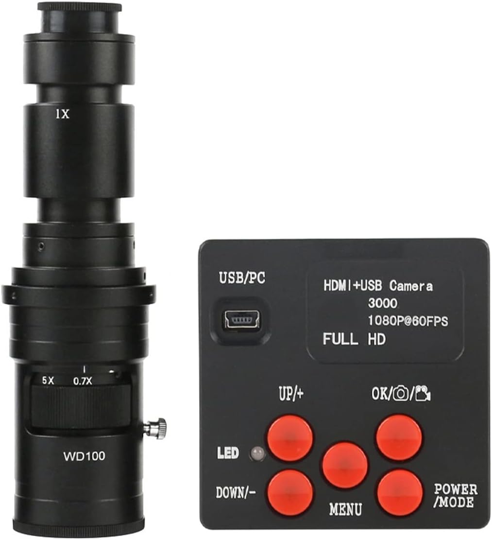 Packing including:1 x Microscope Camera1 x Power supply Adapter1 x HDMI line1 x 4GB TF card1 x USB lineOptional accessories incluede:1 x C-MOUNT Lens(100X or 180X or 300X)1 x 56 LED Adjustable Microscope Ring Light