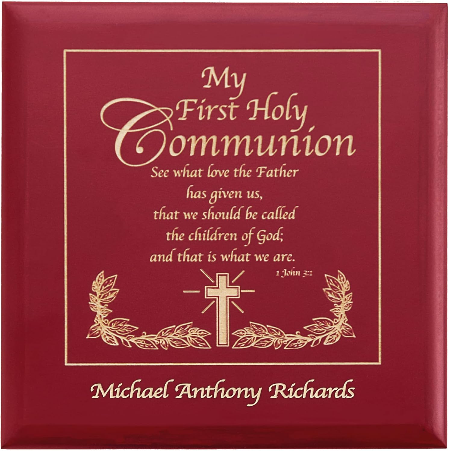 • UNIQUELY PERSONALIZED: A special place for storing mementos from a special day! Choose Confirmation or Communion design, then customize it with any 1-line message up to 32 characters to be laser-engraved on the box.