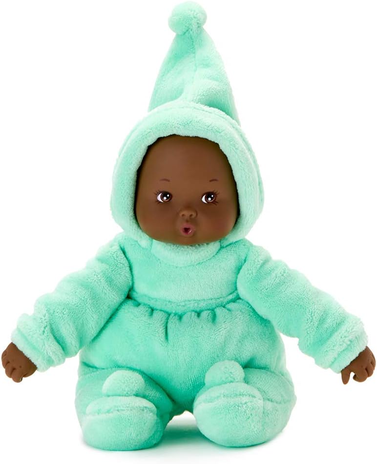 Product Description My first baby is pretty in pink Dressed in a thick, snuggly powder pink sleeper, this 12-inch soft body doll is the perfect size for little hands. A painted brown curl peeks out from under her pink cap, which frames her sweet face with its sparkling blue eyes, Cupid mouth, and rosy cheeks. My first baby engages your child's senses with soft fabric bodies, velvety soft outfits, and sweet vinyl faces. Easy to clean and surface washable, My first baby is crafted of baby-safe materials that are designed to be grasped and pulled. Perfect as a first doll for newborns and up.about Madame Alexander doll Company:since 1923, We have proudly upheld Madame Alexander vision to inspire and engage a child's imagination by crafting beautiful dolls to love, play, and grow up with. The Madame Alexander doll Company encourages girls of all ages and stages to enjoy a lifetime of doll fun, play, gifting, and collecting with quality products that include Madame Alexander play, baby, fashion, and collection. After all, as Madame Alexander herself said, "love is in the details." From the Manufacturer My First Baby- Baby's first doll collection awakens the senses with soft fabric bodies, velvety soft outfits with sweet vinyl faces and hands. Crafted entirely of baby-safe materials, each My First Baby doll is washable and perfect for tiny hands to grasp and pull. This baby has a thick, snuggly pink sleeper.