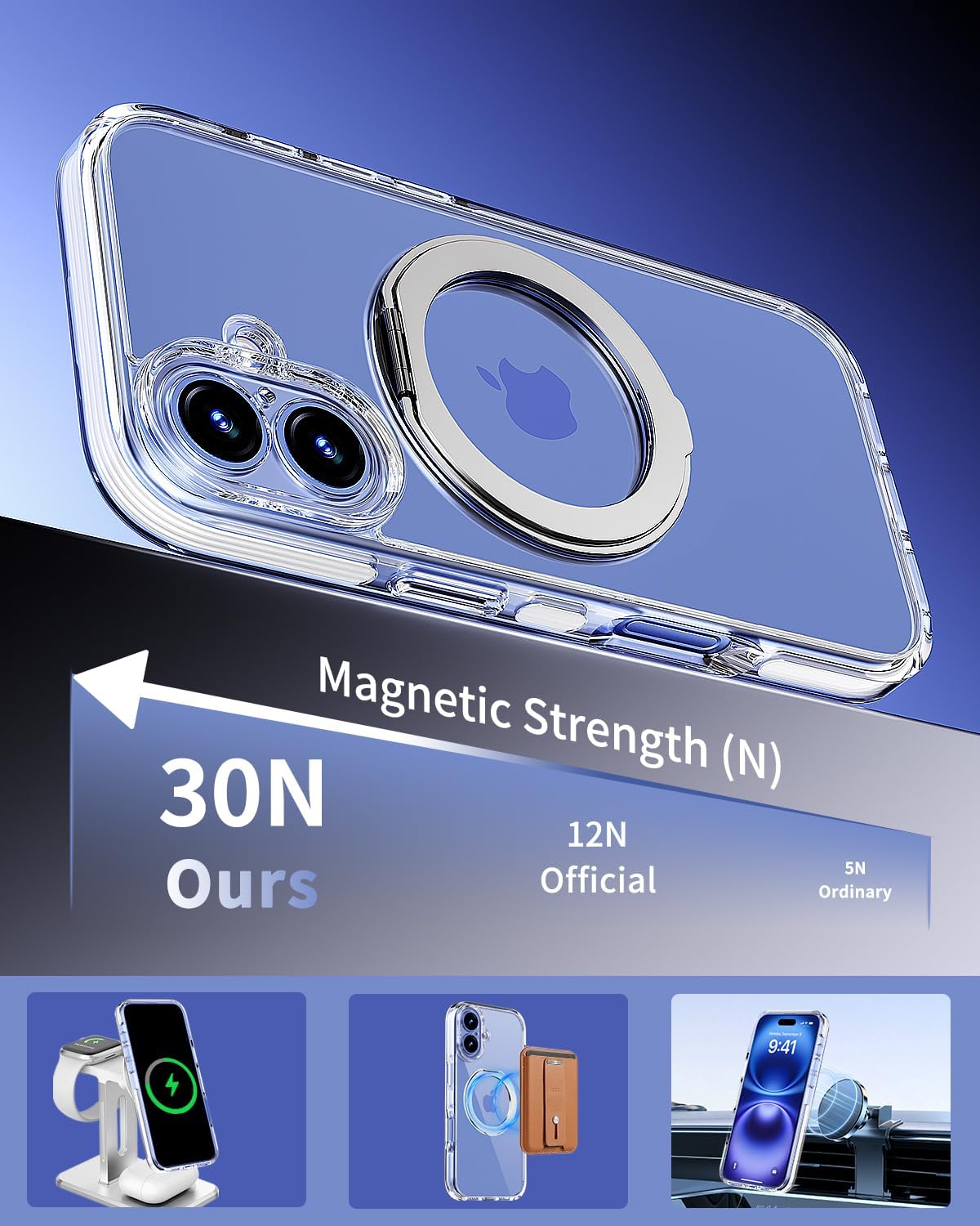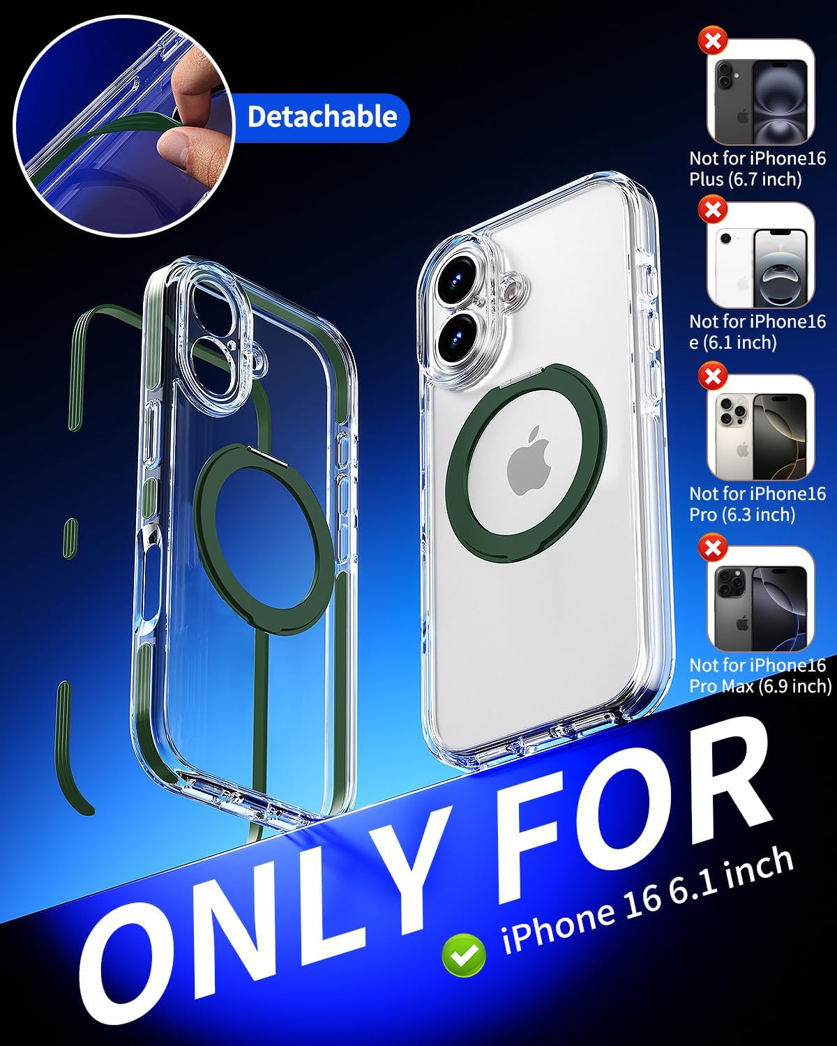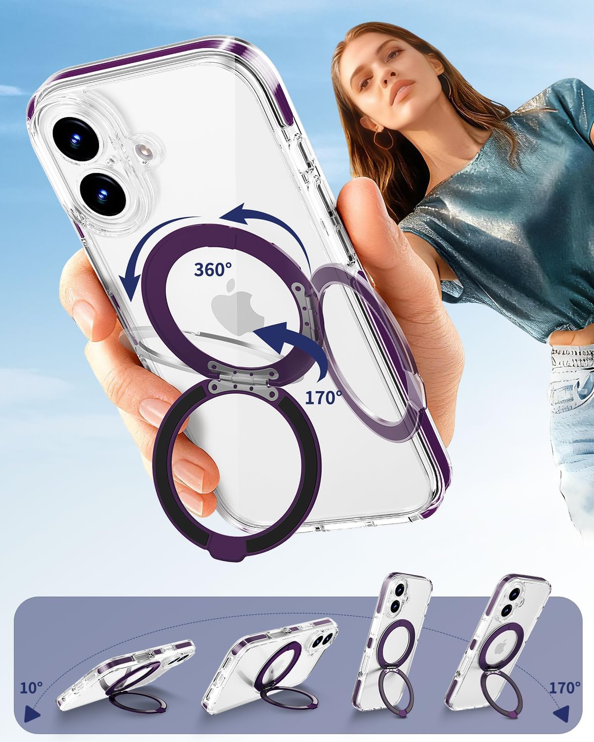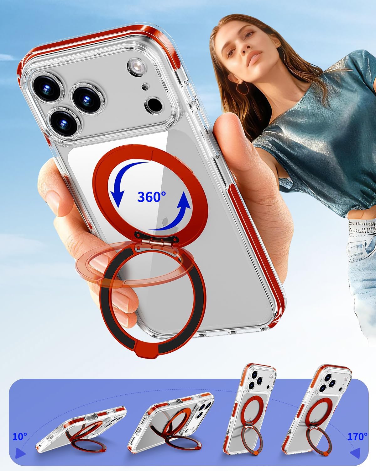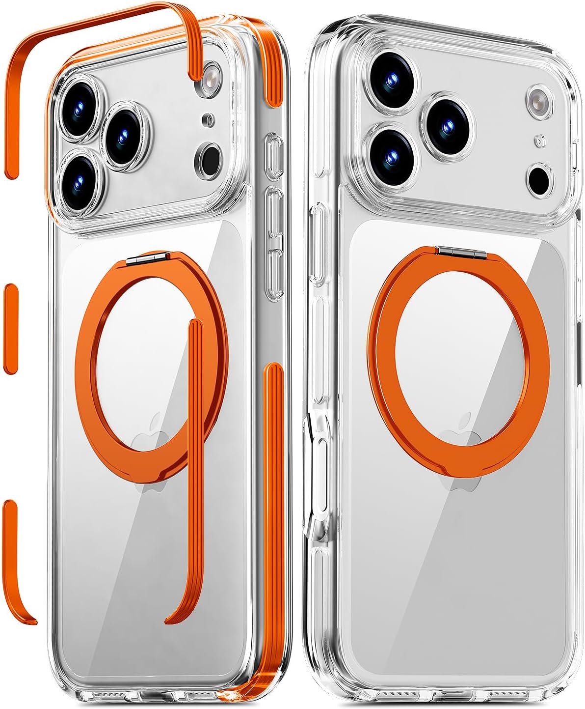 DecaStars Magnetic for iPhone 16 Case with 360 Spin Stand [Compatible with MagSafe] [Military-Grade Protection] [Detachable Strip] Anti-Yellowing Slim Case for iPhone 16 6.1", Orange