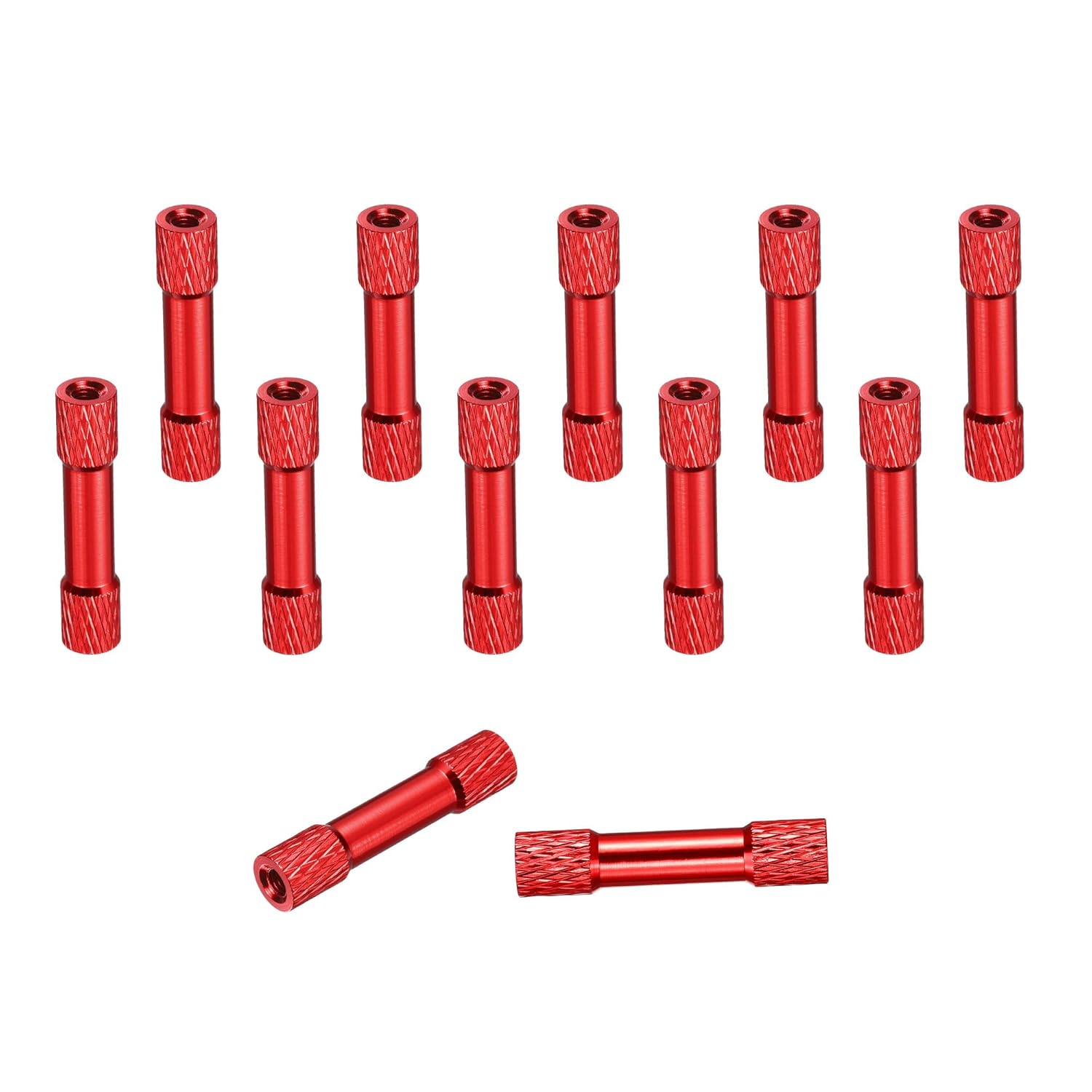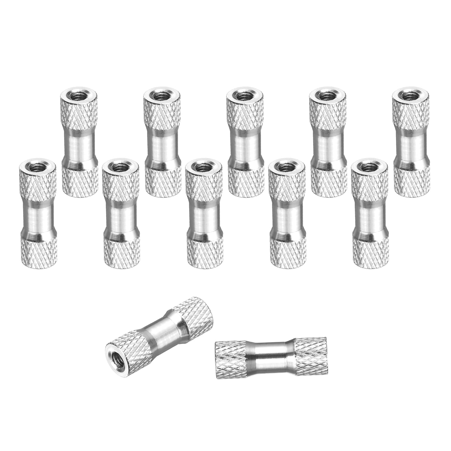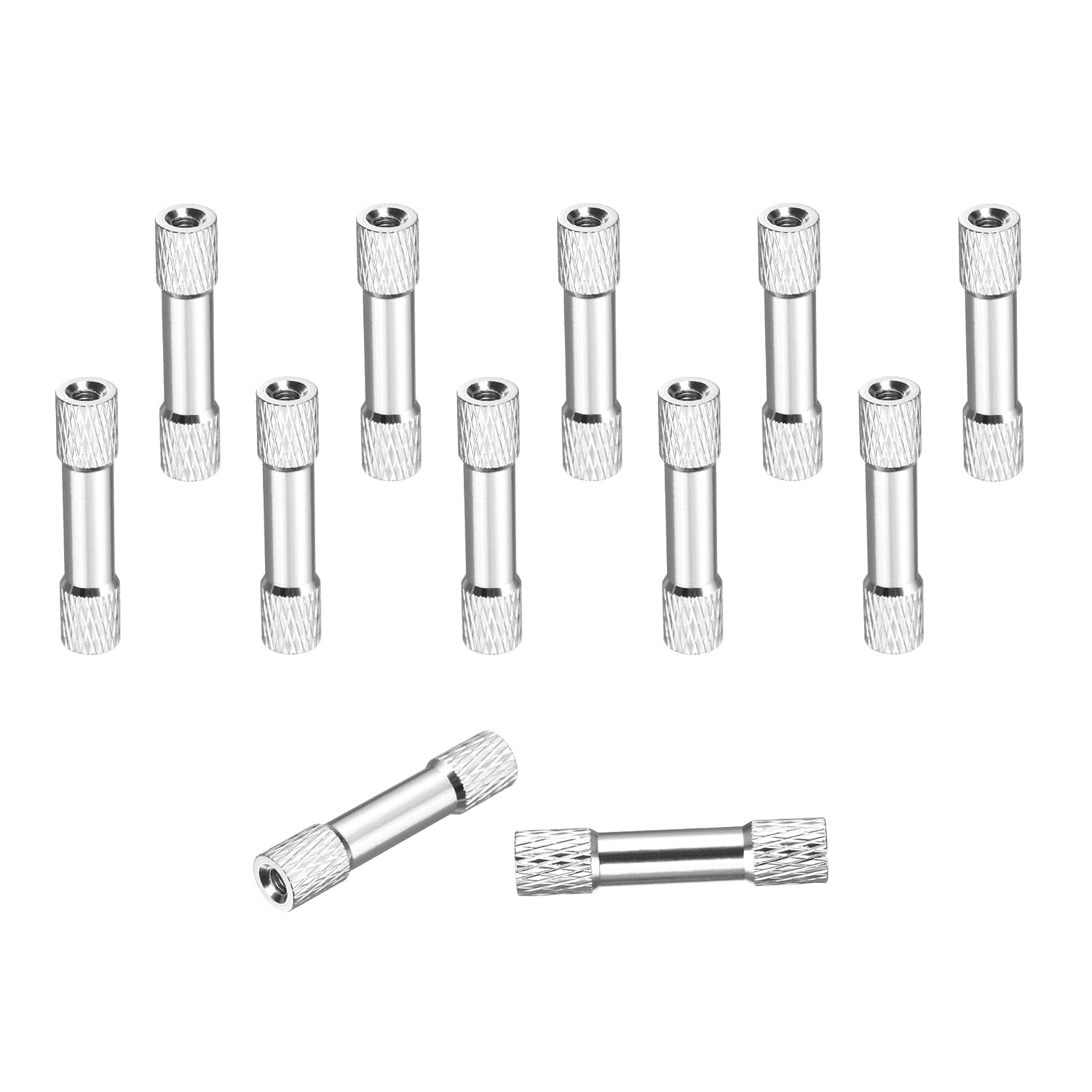 Aluminium standoffs round spacers, is in size of: Inner Screw Thread: M3 x 0.5mm; Total Length: 23mm/0.91 inch; Diameter of Standoff: 6mm/0.24 inch; Color: Silver Tone; Material: Aluminium Alloy; In the package of: 12 Pcs x Knurled Aluminium Column.