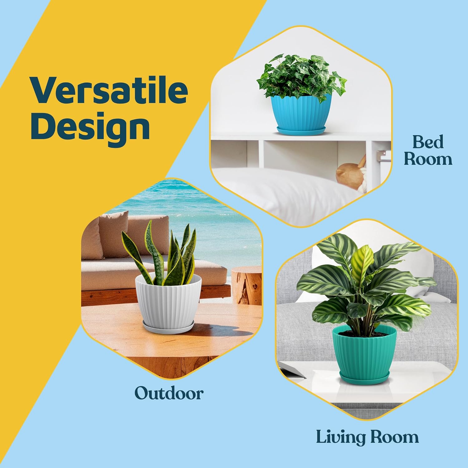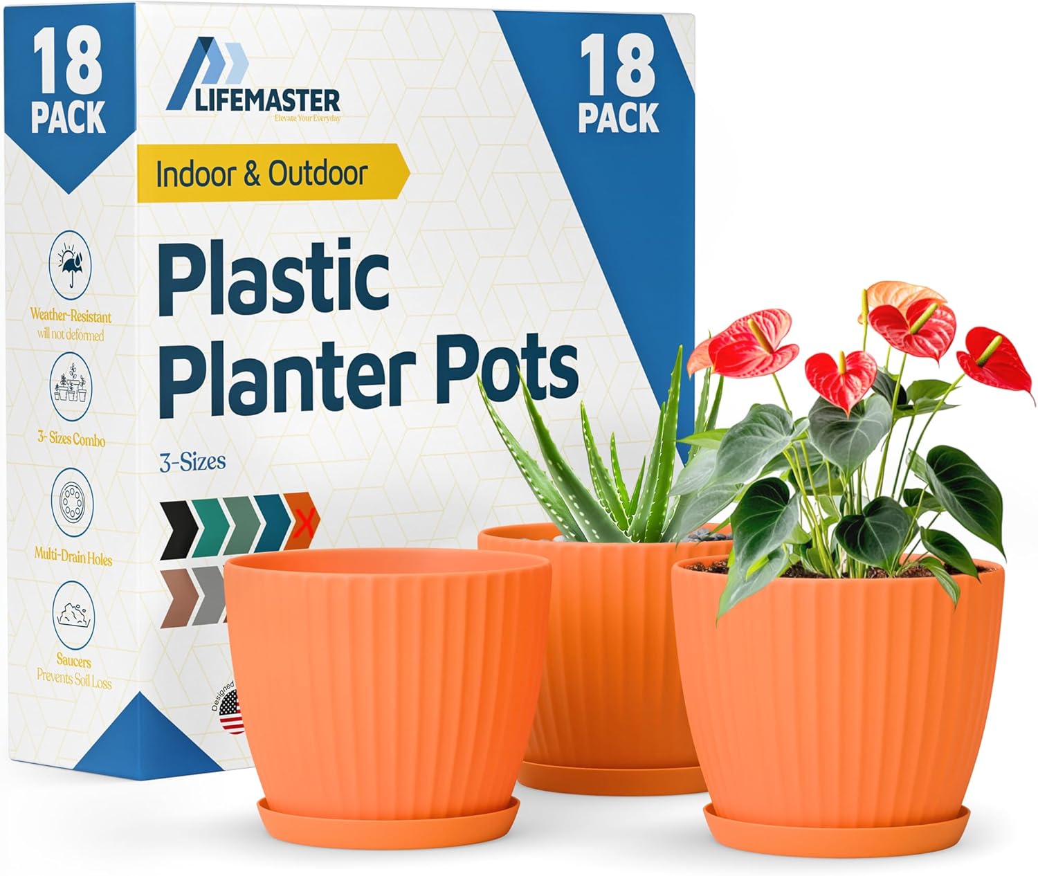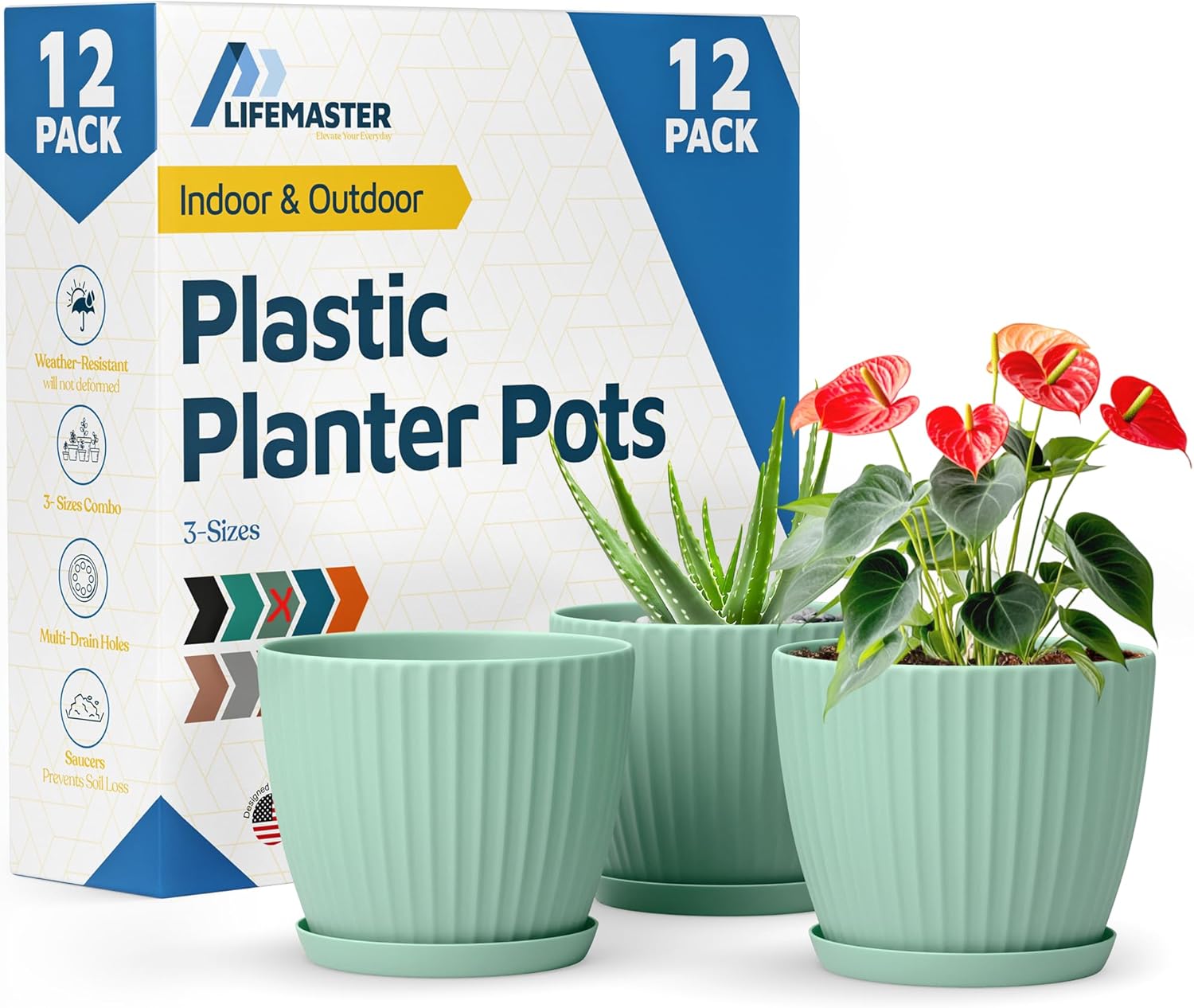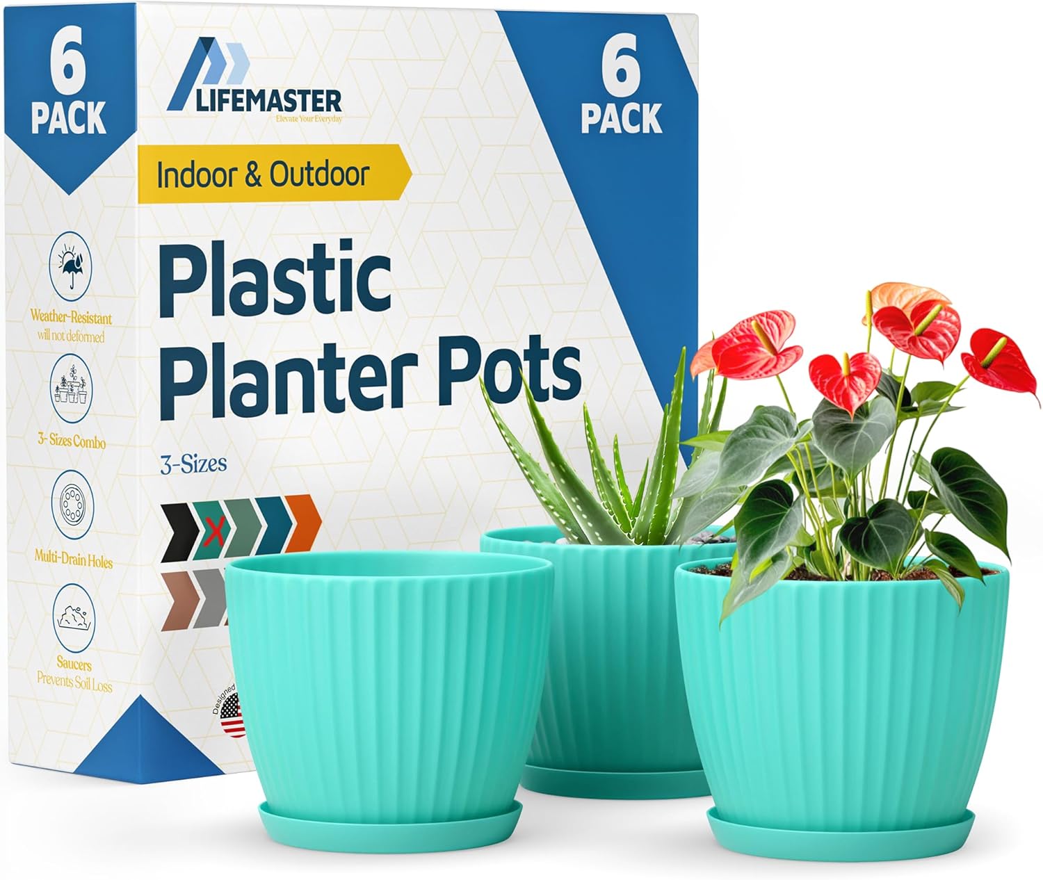 Give your green companions a stylish new home with the Lifemaster 6 Inch Plant Pots with Drainage and Saucers—thoughtfully designed for everyday plant lovers and decor enthusiasts alike. Whether you're nurturing houseplants, herbs, or vibrant flowers, these 1.6L plastic plant pots deliver both charm and functionality. Crafted from thick, sturdy 2.85mm PP plastic, they offer impressive durability while remaining lightweight and easy to handle. The built-in drainage system paired with matching saucers helps keep roots healthy and mess at bay—no more soggy soil or accidental spills on your surfaces. Sized at 6"" x 6"" x 5.1"", these planters offer just the right volume for medium plants, fitting effortlessly on windowsills, desktops, and patio tables. The sleek, minimalist design complements both indoor and outdoor spaces, adding a modern touch to any setting. Plus, with their stackable form, these 6 inch plant pots help you save space when storing or rearranging. Whether you're just starting your plant journey or refreshing your indoor jungle, Lifemaster plant pots make growing beautiful greenery feel effortless and enjoyable.