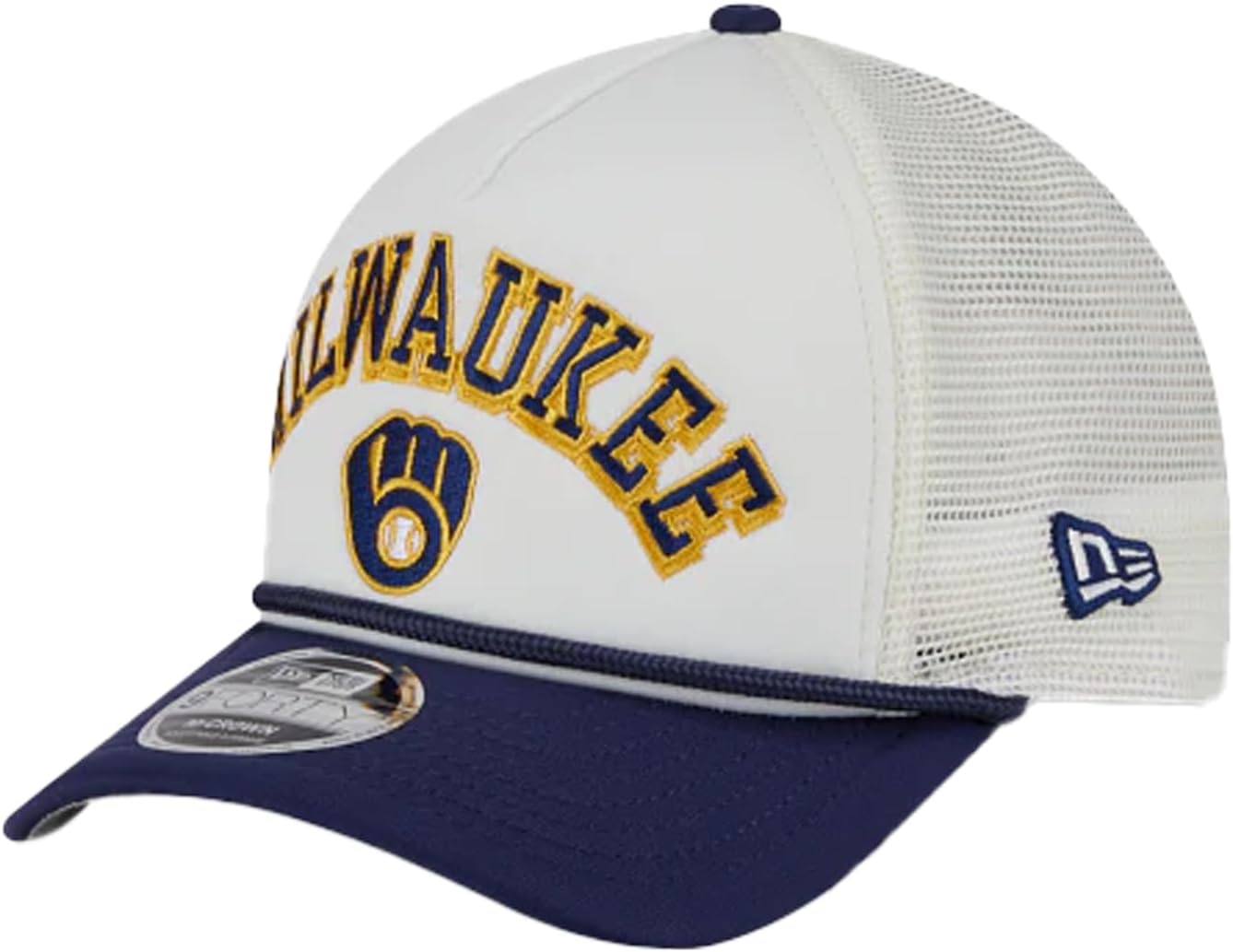 NEW ERA MLB CHROME ARCH 9FORTY M-CROWN A-FRAME TRUCKER MESH ADJUSTABLE SNAPBACK HAT ONE SIZE FITS ALL - Step up your headwear game with the new era mlb chrome arch 9forty m-crown a-frame trucker hat — the perfect blend of modern design, retro-inspired detailing, and bold team pride. Designed by new era, the gold standard in baseball caps, this hat features a structured m-crown a-frame silhouette with a high front profile, making it a standout addition to any outfit. Crafted from 100% polyester, the front of the cap features a foam panel construction with your favorite mlb team’s logo embroidered in the signature chrome arch style. A stylish rope detail runs across the curved bill, adding a vintage vibe to the contemporary look. Around the back, a breathable mesh panel ensures airflow and comfort, even on hot summer days or during tense ninth innings. The adjustable snapback closure lets you tailor the fit to your liking, making this cap ideal for fans of all sizes. Whether you're heading to the ballpark, hanging out with friends, or collecting team merchandise, this officially licensed mlb snapback is the ultimate expression of baseball pride and style. Choose your favorite team and rep them year-round with this premium-quality trucker cap that combines functionality, fashion, and fandom into one versatile essential.