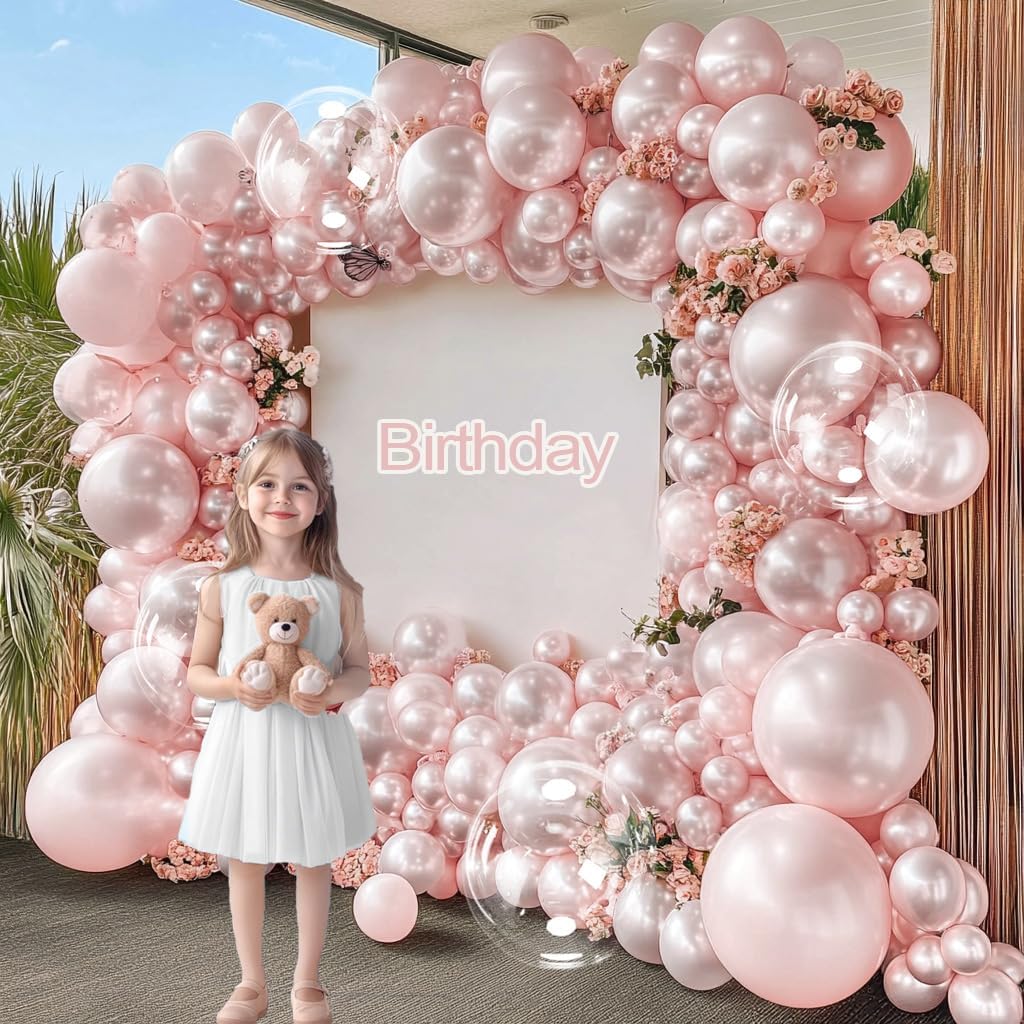 Premium Value Pack What will you receive? 15pcs 5inch double stuffed pearl white/white pearl balloons(white balloon in pearl white balloon) 15pcs 10inch double stuffed pearl white/white pearl balloons(white balloon in pearl white balloon) 20pcs 12inch double stuffed pearl white/white pearl balloons(white balloon in pearl white balloon) 15pcs 5inch double stuffed pearl pink/baby pink/light pink balloons(white sand balloon in pearl white balloon) 15pcs 10inch double stuffed pearl pink/baby pink/light pink balloons(white sand balloon in pearl white balloon) 20pcs 12inch double stuffed pearl pink/baby pink/light pink balloons(white sand balloon in pearl white balloon) 10pcs 10inch clear bobo balloons 6pcs 18inch clear bobo balloons ¨2 roll balloon garland strip (16ft) ¨2 roll balloon glue dot (100pcs glue dots) ¨2 roll Curling Ribbon (33 ft)