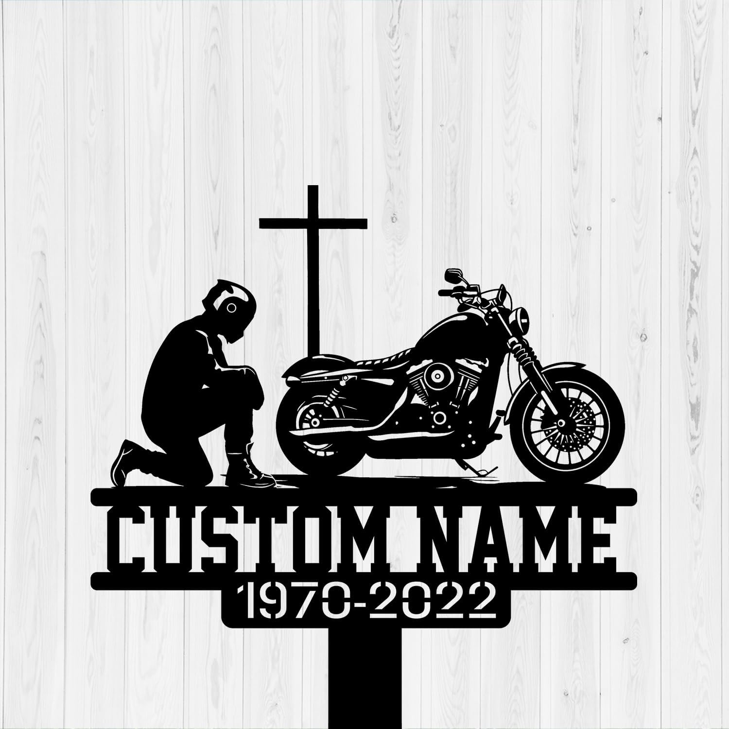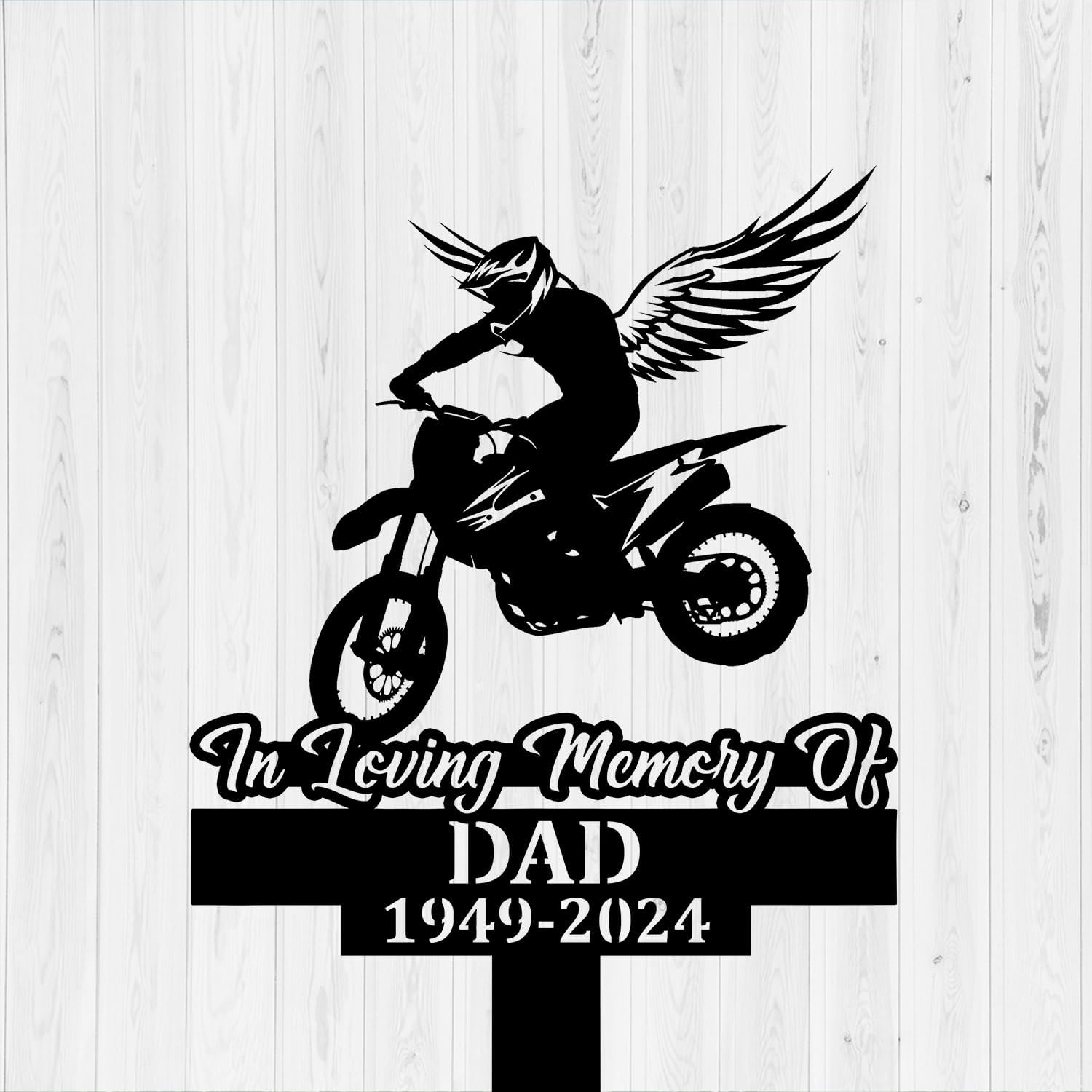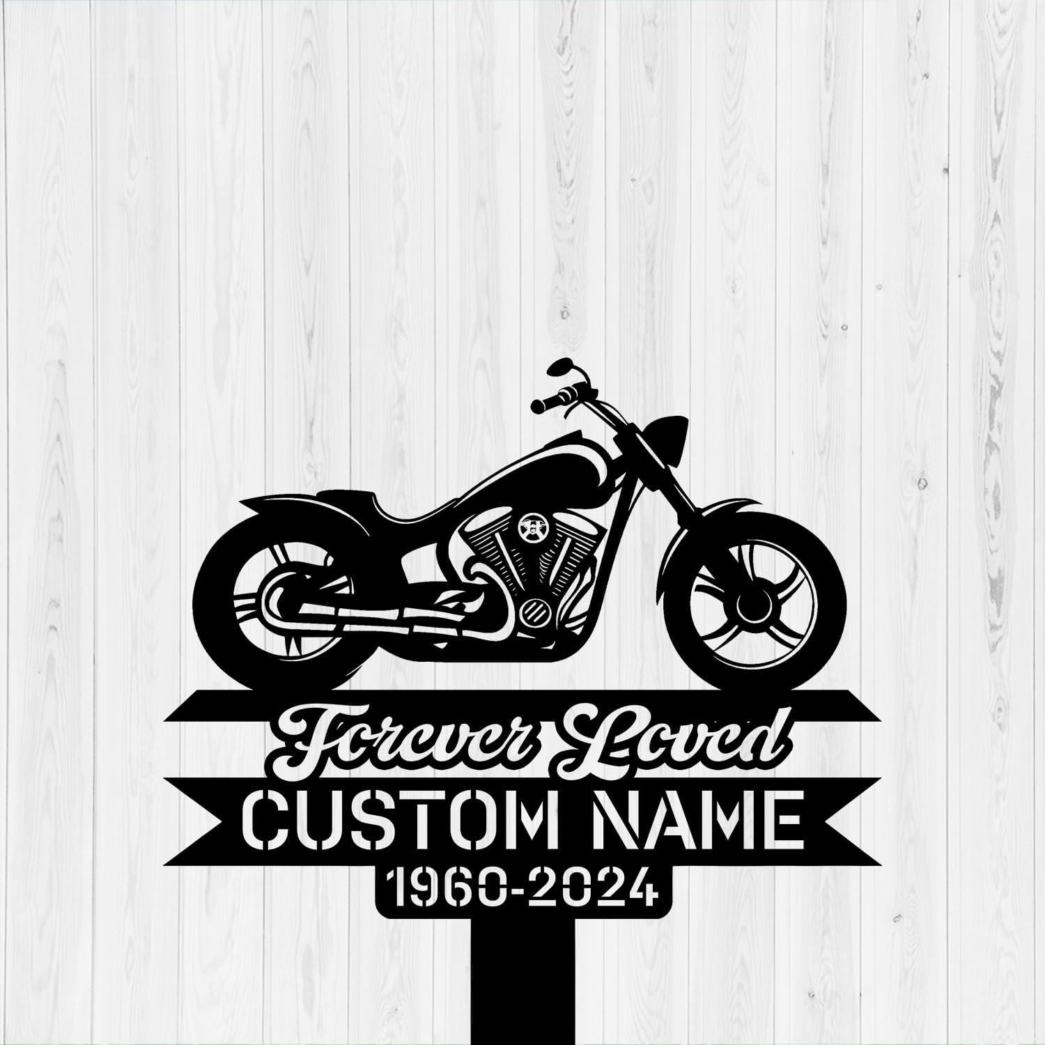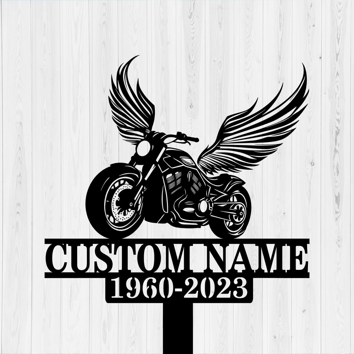 This Personalized Motorcycle Biker Memorial Garden Stake features a chopper motorcycle with wings design, symbolizing freedom and the enduring spirit of a motorcycle enthusiast. Available in sizes ranging from 8 to 24 inches, this custom biker memorial gift is perfect for honoring a Dad or Son who has passed away. The design blends the iconic image of a chopper motorcycle with wings, representing a lasting legacy of adventure, strength, and the open road. This biker grave marker serves as a heartfelt tribute to a loved one, offering a meaningful way to keep their memory alive.