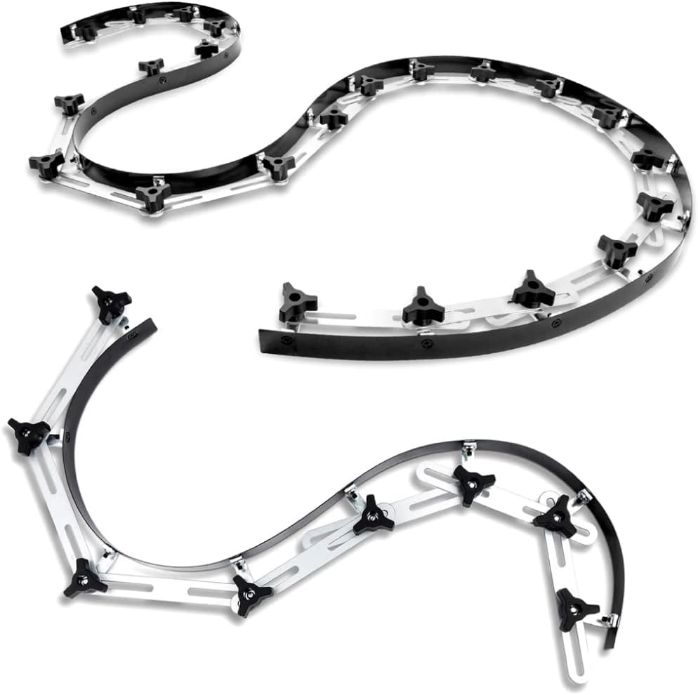 Introducing the 107-Inch Flexible Curve Template by POWERTEC.This flexible curve duplicator is designed to deliver high precision replication and transference of complex or compound curves from patterns to your work piece. It is intended to save you time and hassle without interrupting your workflow while marking out curves on wood, steel, leather or fabric. Besides practical woodworking, its durable steel construction also makes it perfect for long panels such as hood, roof skins, fenders and other auto body applications.If you’re looking for quick, easy and high precision shape transfers for your workshop applications – this flexible curve tool is for you.Easy To UseSimply align the curve template to the curve that you wish to transfer. Then, loosen the knobs, adjust the template curve and then tighten the locking knobs along the spine of that curve. The curve will hold (stay in place), thereby allowing you to transfer to whatever material you are working on for precise contouring and easy shape matching.Please Note: For customization, these templates can be cut into smaller sections by disassembling at any of the segment joints and cutting the spring steel strap with a shear or snips.POWERTEC is a leading manufacturer of high quality woodworking tools and accessories, machines, and an assortment of OEM replacement parts. We are committed to exceeding expectations, while bringing the latest innovations, technology, and product development to the industry.
