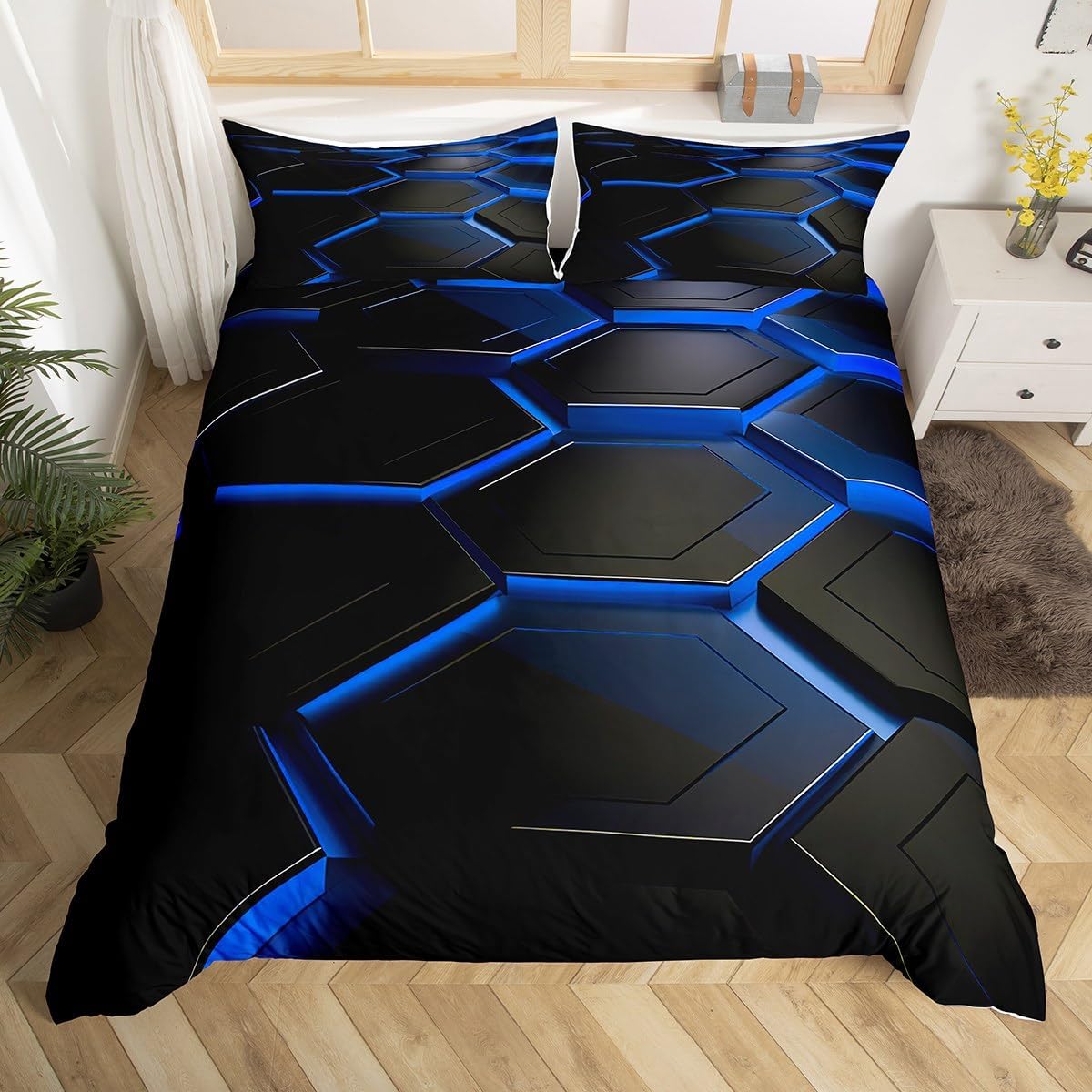 Package Include: Duvet Cover, Pillowcase; High-end Duvet Cover Set Pattern Bedding Set,simply decorating your rooms any time you want, bringing you fresh feel for year round use;Long-lasting:;Made from 100% polyester microfiber,the sheet set offers long-lasting strength, anatural resistance to shrinking and a noticeably soft hand feel;;Size Information::;Twin size : 2 Piece duvet cover set : 1 Duvet Cover 68" x 90",173 x 228 cm , 1 pillowcase 20" x 30",51x75 cm ;Without Comforter;Full size : 3 Piece duvet cover set : 1 Duvet Cover 80" x 90",200 x 229 cm , 2 pillowcase 20" x 30",51 x 75 cm ;Without Comforter;Queen size : 3 Piece duvet cover set : 1 Duvet Cover 90" x 90",229 x 229 cm , 2 pillowcase 20" x 30",51 x 75 cm ;Without Comforter;King size : 3 Piece duvet cover set : 1 Duvet Cover 104" x 90",264 x 229 cm , 2 pillowcase 20" x 36",51 x 92 cm ;Without Comforter;Personalize your bedroom:Beautiful design and colorful print, makes your bedroom unique and brings you a wonderful dream;Washing instructionsMachine wash separately in cold water,hang dry, do not bleach;Occasion:The cute soft duvet cover bedding sets designed for Children ,Adult, Men, Women, Teens; This duvet cover set is also suitable for full seasons, Spring, Summer, Autumn and Winter;