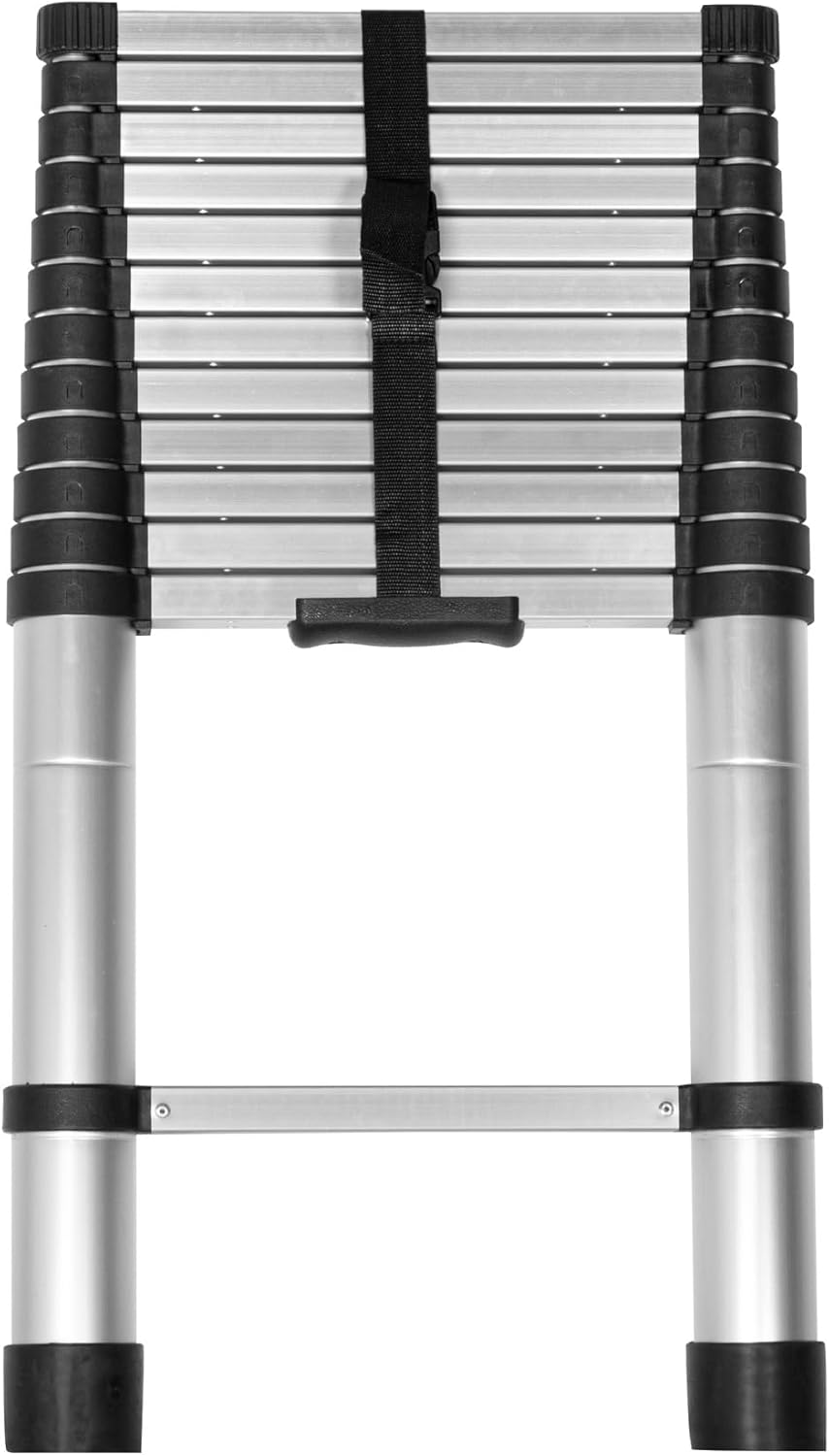 Take your tasks to new heights with the Handy Tek Aluminum Telescoping Extension Ladder, designed for safety and efficiency. Crafted from durable aluminum, this extendable ladder withstands rusting and ensures long-lasting performance and reliability for both indoor and outdoor use. Equipped with slip-resistant feet, this portable telescopic ladder offers superior stability, helping avoid accidents during use. The telescopic mechanism allows for easy height adjustment, making this compact folding ladder suitable for both high-reaching tasks and low-level chores. Plus, the secure locking system keeps each rung firmly in place, offering security and peace of mind with every use. Thanks to its lightweight, collapsible design, this ladder is easy to carry and store in tight spaces like closets or car trunks. Measuring 33.86 inches in length by 19.29 inches in width by 3.15 inches in height, this extendable ladder can be conveniently stored when not in use. Sold in a 1 count box.