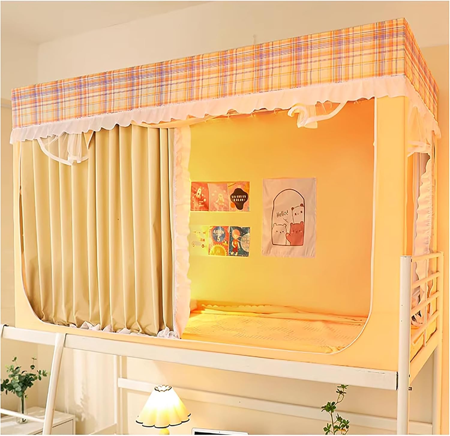 Would you like to have a gorgeous twin top bunk bed tent canopy ? This cute canopy bed curtains frame meets your requirements and make your bed dreamy and beautiful.Canopy bed poles material: Painted carbon steelCanopy Bed Frame Size Range:Width: 80-90cm(31.4-35.4in)Height: 90-120cm(35.4-47.2in)Length: 180-190cm(70.8-74.8in)Package Includes:1*canopy bed frame post poles1*bed curtain