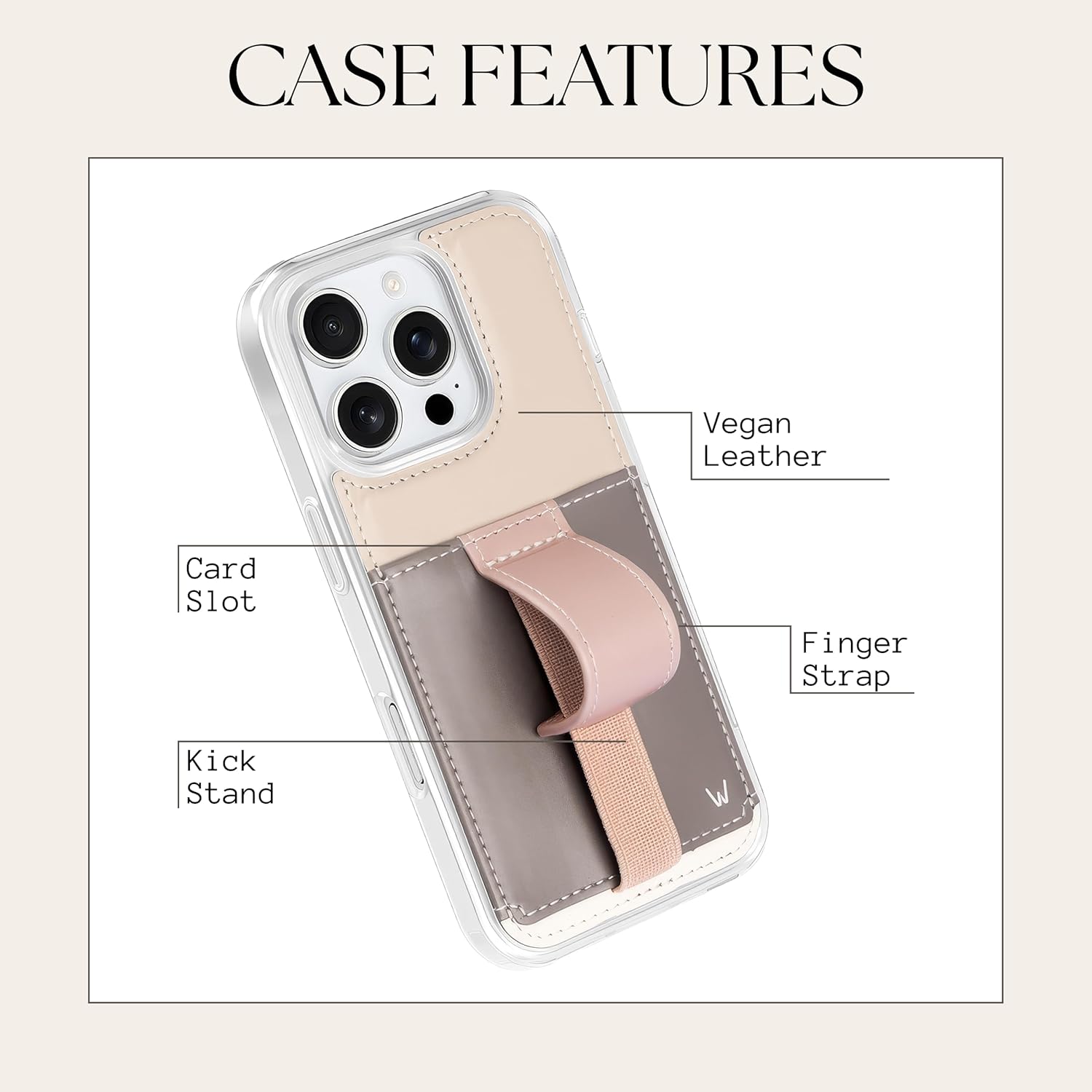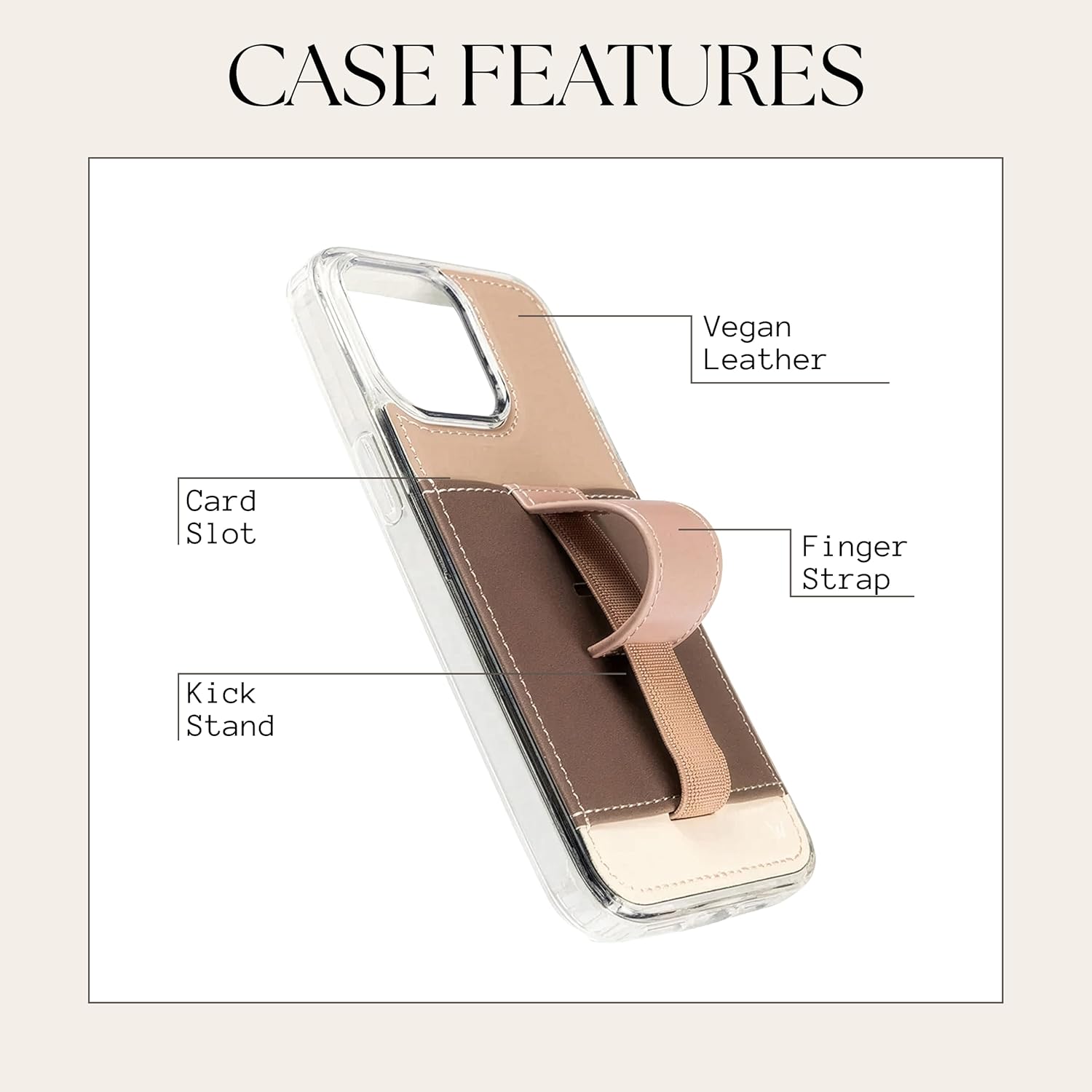 | Additional Features | Card Slots, Finger Strap, Kickstand, Vegan Leather |