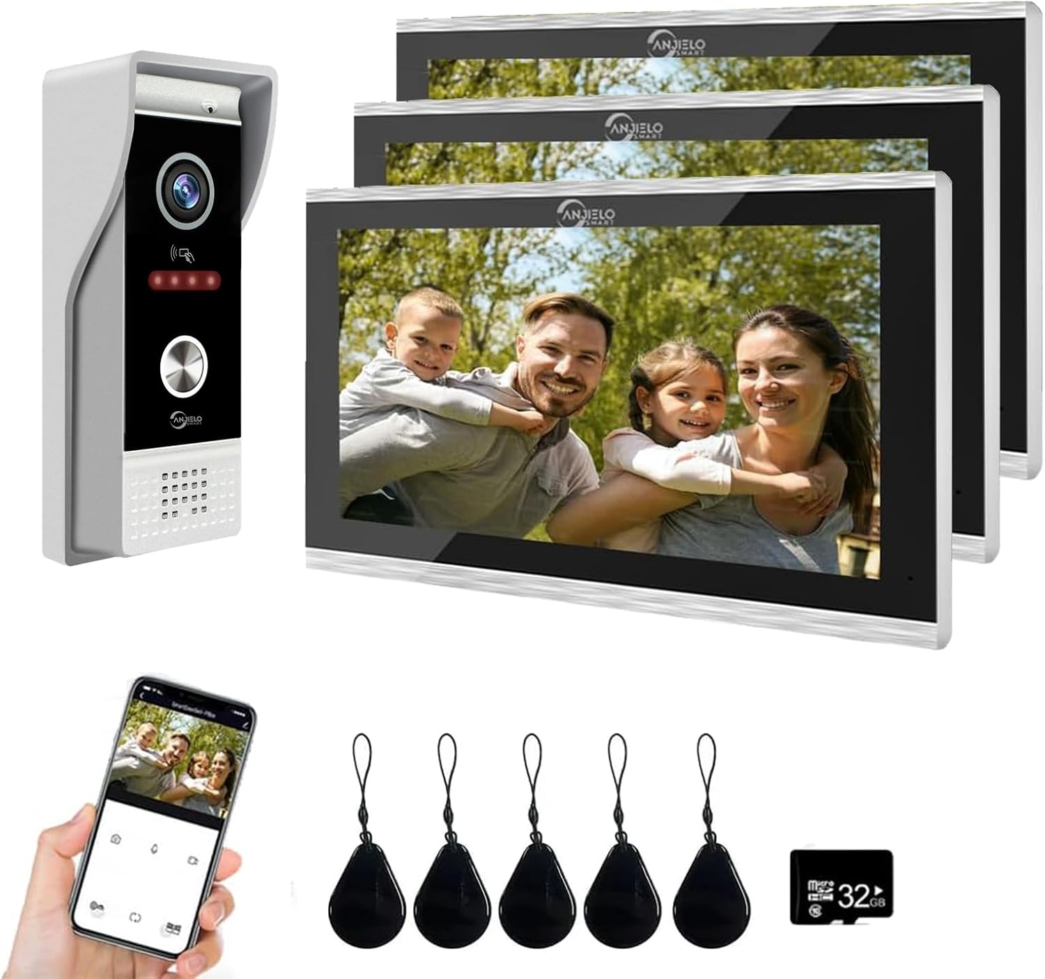 Wired Video Doorbell Apartment Intercom System with 1080P Doorbell Camera,10 Inch Full Touch Monitor,3 IN 1 Unlock,TUYA WiFi Smart Home Video Intercom Door Phone Kits for Villa Home Please NOTE the wifi video intercom system not mean it's don't need any cable. The monitor support WIFI network,but the indoor monitor and doorbell is Wired connect. Product Features: Outdoor doorbell Camera CMOS Wide angle angle 1/2.7 (148') Definition(Hor.) 1080P/720P/CVBS LEDs for night IR LEDs(120°) Power consumption 200mAmax.(9V~15V DC) Power supplier Supplied from indoor unit Operation temp. -40~+50°C Installation Surface/flush mount Size:140*50*20MM Indoor Monitor: Screen: 10 inch TFT-LCD touch screen Resolution: 1024 x 680 Ring: 7-chord melody ringsVolume Connection Way: 4-wires, WIFI tuya solution Panel Material: Acrylic/ABS cove Size:272*190*10MM